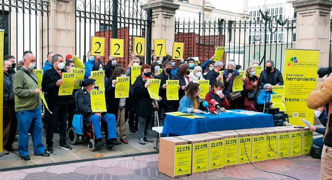 En total han sido 22.075 firmas las que se han recogido desde el pasado mes de septiembre. «Un salto adelante para permitir que esta idea, que según hemos comprobado es acogida favorablemente por una mayoría de la ciudadanía vasca, pueda convertirse, en un el futuro, en una herramienta de política social y económica, que nos permita avanzar hacia una sociedad mejor: capaz de acabar definitivamente con la pobreza, y de poner la vida en el centro» apuntan.