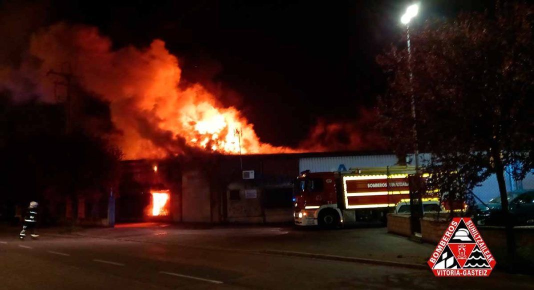 Los bomberos de Vitoria-Gasteiz han sofocado esta madrugada un aparatoso incendio que ha tenido lugar en el Polígono Industrial de Gamarra que por suerte no ha dejado heridos. El aviso ha llegado al Servicio de Prevención y Extinción de Incendios de Vitoria pasado unos minutos de la media noche y hasta el lugar se ha trasladado «todo el personal y vehículos» de los servicios de bomberos de Vitoria para hacer frente al fuego y a una gran columna de humo.