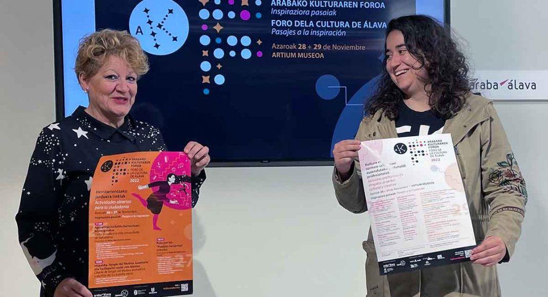 El ‘Foro de la Cultura de Álava. Pasajes a la inspiración’ constará de dos jornadas que tienen como objetivo crear un espacio para el encuentro entre agentes culturales y creativos de Álava, así como facilitar el conocimiento en torno a experiencias desarrolladas en otros territorios y promover el debate entre profesionales provenientes de diversos contextos. El programa incluye charlas, talleres, mesas redondas, diálogos y visitas guiadas.