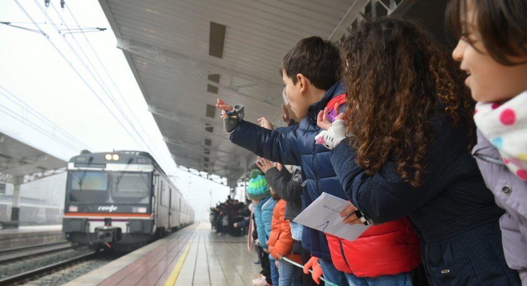 Cientos de txikis dan la bienvenida a los Reyes Magos llegados en tren