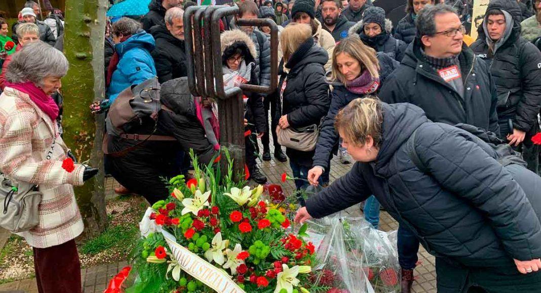 Jon Hernández, secretario general del PCE-EPK: «Les hicieron salir con gases lacrimógenos y con humo. Les esperaron y les acribillarón. Esto lo sabían y aun así pelearon. Pelearon por sus derechos. Pelearon por nuestros derechos. Hoy vamos a hacer una ofrenda a aquellos cinco que cayeron ese día y a los cientos de personas que fueron heridas por aquella brigada criminal.