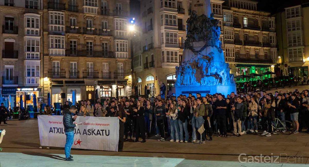 Por la tarde, y para condenar lo ocurrido y pedir la libertad del detenido, se convocó una concentración en la Virgen Blanca, donde se leyó un comunicado.