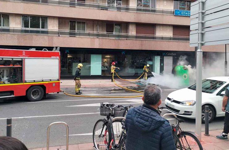 Según informan fuentes policiales, el primer incendio tuvo lugar en torno a las 18:30 horas en un depósito de vidrio ubicado en la calle La Paz, entre las calles Independencia y Ortiz de Zárate, lo que obligó a cortar el tráfico. Posteriormente, se produjeron otros dos ataques en Portal de Castilla y Portal de Lasarte.