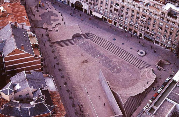 Uno de los proyectos más debatidos en los que participó Chillida es la Plaza de los Fueros en Vitoria. Diseñada en colaboración con Luis Peña Ganchegui, Luis Carlos Roda, Roberto Fernández y Emilio Truchuelo, esta plaza triangular fue construida en 1979. Ubicada en el Ensanche de Vitoria, ocupa el lugar de la antigua plaza de abastos, un edificio modernista de 1899.