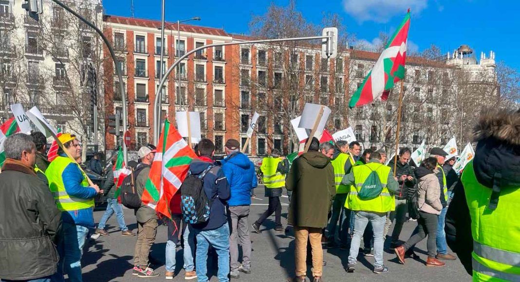 En una movilización sin precedentes, agricultores y ganaderos de Álava y el enclave de Treviño ha acudido este lunes a Madrid para unirse a las manifestaciones del sector. Edurne Basterra, presidenta de la UAGA, ha expresado su firme convicción sobre la necesidad de esta movilización: «Desde UAGA tenemos muy claro que hay que protestar, si es necesario, hasta a Bruselas».