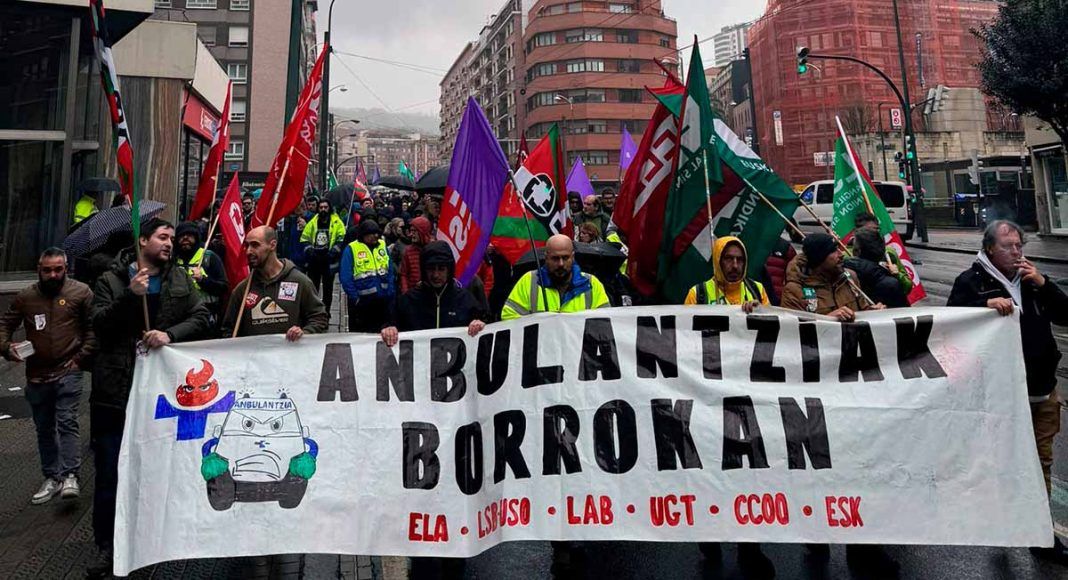 Este lunes comenzó la huelga indefinida en el transporte sanitario subcontratado de Euskadi tras 29 reuniones fallidas con la cooperativa La Pau (gestora de las ambulancias) y 23 jornadas de paros previos, sin avance alguno hacia una resolución. Por su parte, el Gobierno Vasco ha impuesto servicios mínimos del 100% para los servicios urgentes y un 90% para los no urgentes, una medida que Jagoba Udaeta, representante de los trabajadores por parte del sindicato ESK, considera «abusiva» y «sin precedentes».