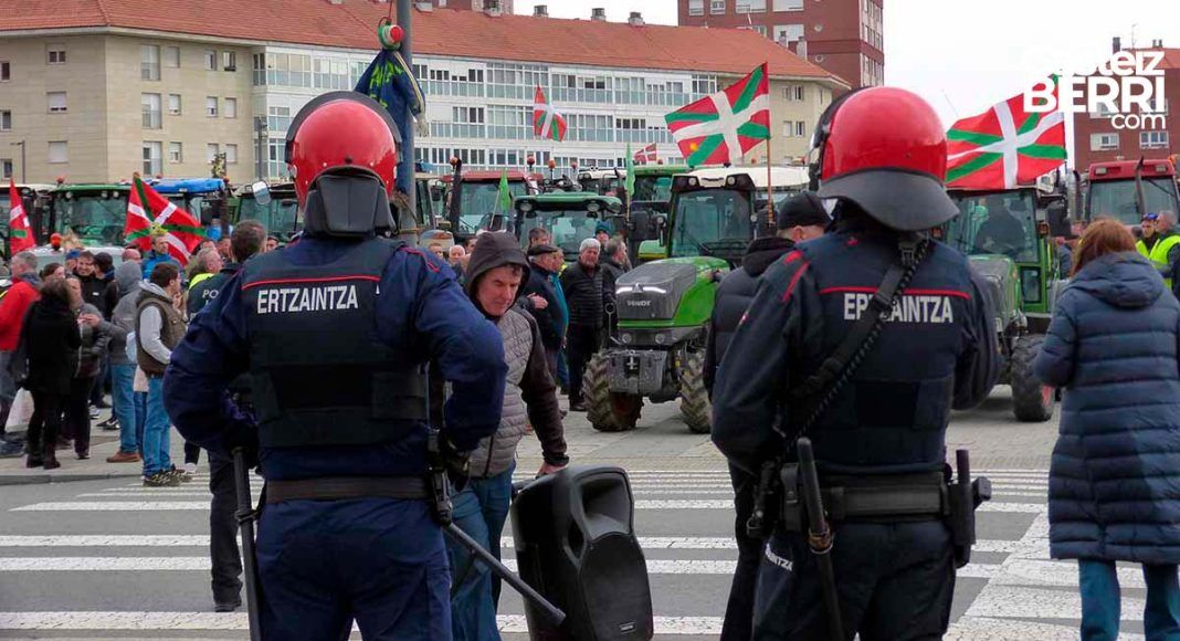 La Ertzaintza impide el acceso de los tractores a la A-1 en su protesta contra el acuerdo UE-Mercosur