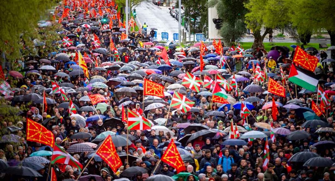 EH Bildu ha convocado una gran manifestación en Iruñea bajo el lema «Nazioa gara» (Somos una nación). A pesar de las condiciones climáticas adversas, la marcha ha contado con una notable participación y ha incluido símbolos representativos como un escudo de las siete provincias de Euskal Herria, banderas de Navarra, ikurriñas, y algunas catalanas y palestinas, al son de llamados a la independencia. La movilización ha culminado con un discurso de Arnaldo Otegi en el parque de Antoniutti, y ha contado con el apoyo de figuras de la izquierda soberanista, como la eurodiputada de ERC, Diana Riba, y el miembro del BNG, Rubén Cela.