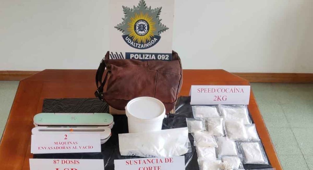 La nota de prensa destaca la colaboración de la Unidad Canina de la Ertzaintza en los registros realizados, que incluyeron «dos viviendas, dos vehículos y el citado trastero». Durante estos, se incautaron «alrededor de 2 kilogramos de speed, en torno a 800 gramos de hachís, algo más de medio centenar de pastillas de éxtasis y cerca de 100 dosis de LSD».