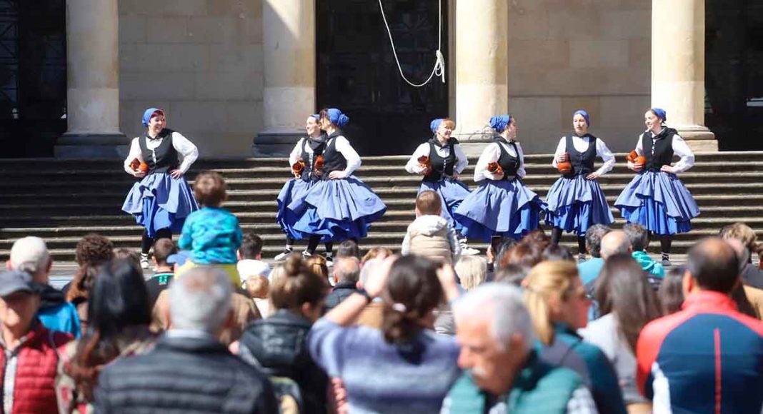 La música inundó las plazas de la ciudad con el pasacalles de las fanfarres, donde grupos como Kilkir y Sutan Txaranga, entre otros, aportaron el ambiente festivo hasta las tres de la tarde. Por la tarde, el grupo Jare Dantza Taldea presentó el espectáculo “Euskal jaietan barrena”, seguido de una danza vertical única por la compañía La Glo en la Plaza de la Provincia.