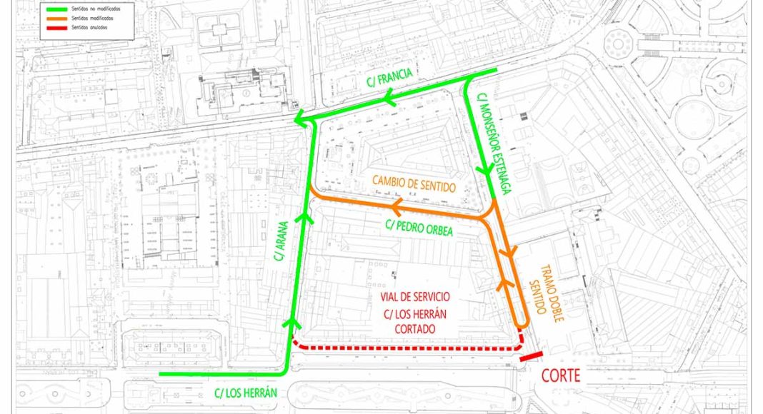 Con la desaparición del vial de la calle Los Herrán, el acceso desde Los Herrán a la calle Arana sólo será posible hacia Francia. Además, el sentido de la calle Pedro Orbea se invertirá de manera provisional, y Monseñor Estenaga se convertirá en un fondo de saco hasta que las obras permitan recuperar su conexión con Los Herrán.