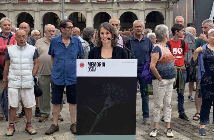 Este viernes por la mañana, la plataforma Memoria Osoa, que agrupa a diversas asociaciones de víctimas de la violencia de Estado y entidades memorialísticas, se ha concentrado en la Plaza Nueva de Vitoria-Gasteiz.