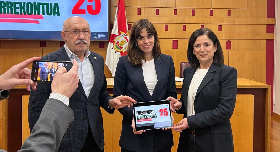 Este martes, la alcaldesa Maider Etxebarria, acompañada por la teniente de alcaldesa Beatriz Artolazabal y el concejal de Hacienda Jon Armentia, ha desgranado las principales líneas del presupuesto de 2025, aprobado previamente en la Junta de Gobierno. Las cuentas alcanzan los 475,6 millones de euros y, al sumar los organismos autónomos y empresas públicas, ascienden a 577,6 millones.