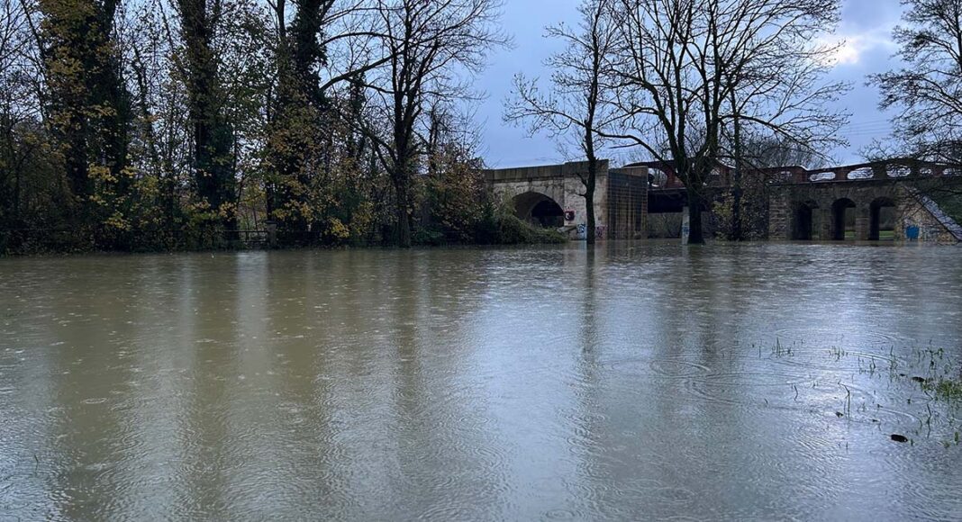 El parque de Abetxuko aledaño al río Zadorra inundado esta tarde | GB