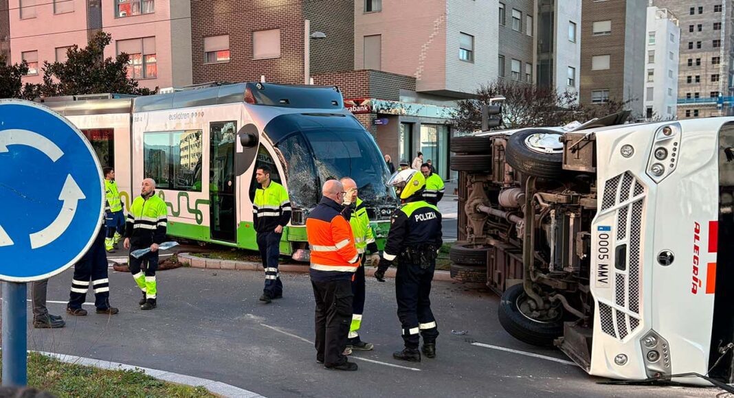 El impacto ha volcado el microbús y ha descarrilado parcialmente el tranvía, lo que ha obligado a suspender el servicio entre las paradas de Florida y Salburua.