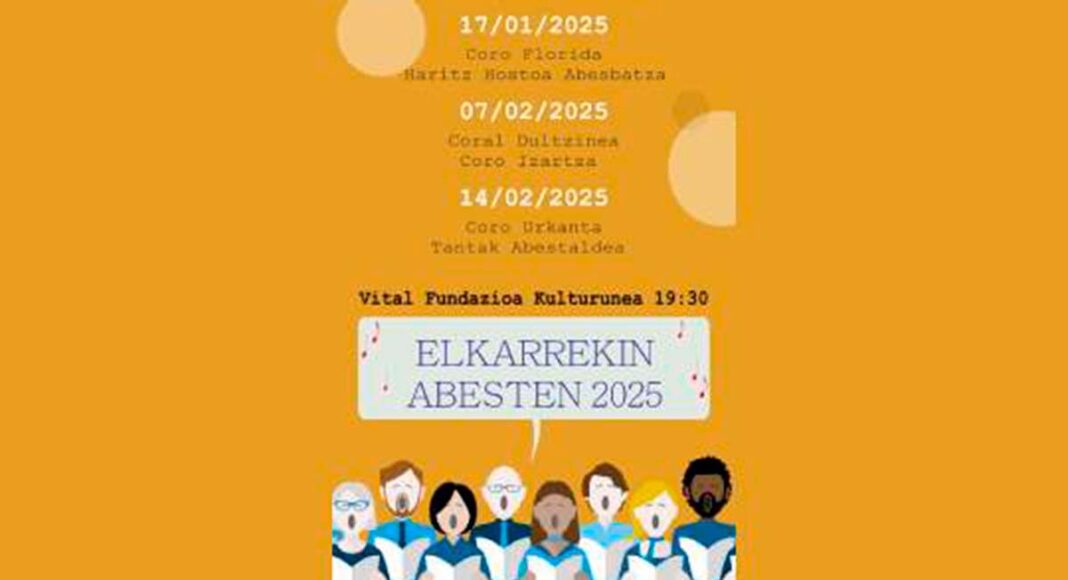 La música coral será la gran protagonista en Vitoria-Gasteiz con la segunda edición de Elkarrekin Abesten – Cantemos Juntos 2025. Este evento, organizado por Fundación Vital y la Federación Alavesa de Coros, se celebrará del 10 de enero al 14 de febrero, con presentaciones a las 19:30 en el Vital Fundazioa Kulturunea, ubicado en el Centro Dendaraba.