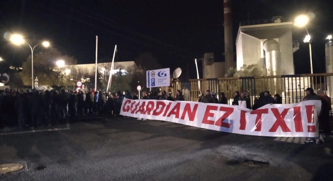 Desde las 06:00 horas, alrededor de 200 personas —trabajadores, vecinos y sindicalistas— han bloqueado los accesos a la fábrica con una pancarta que dice «Guardian ez itxi» (Guardian no se cierra). Maddalen Muguruza, del sindicato LAB, ha denunciado la falta de transparencia: «Desde las 04:00 horas sabemos que hay personal externo dentro, pero no sabemos qué están haciendo ni por qué».