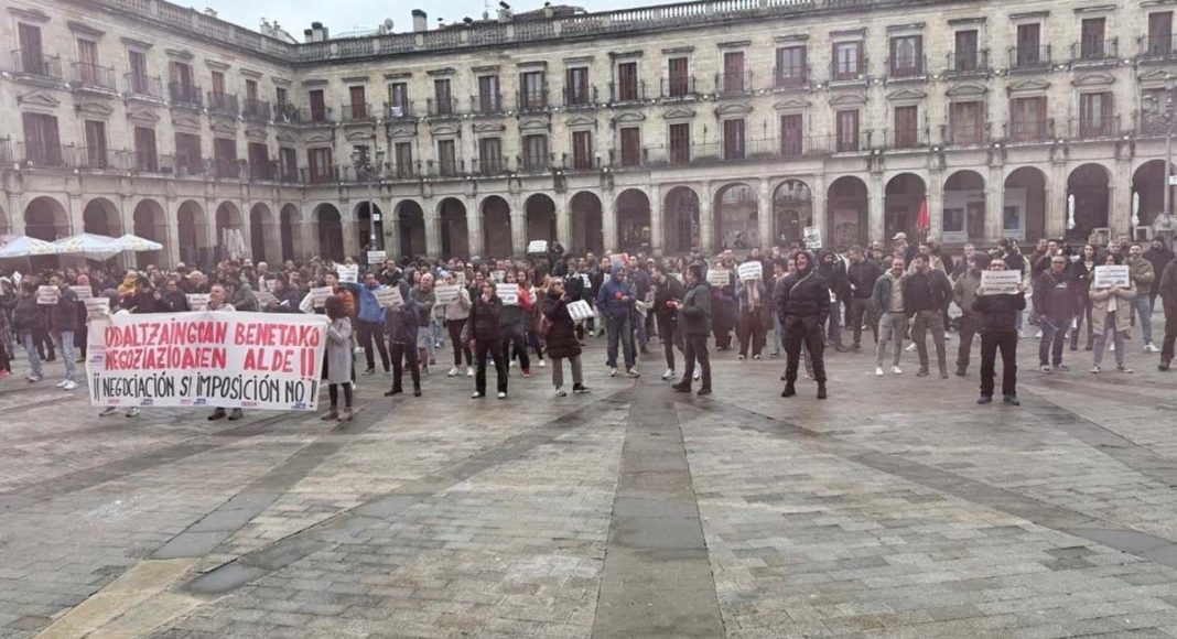 El conflicto entre la Policía Local de Vitoria-Gasteiz y el Ayuntamiento sigue sin resolverse. Este viernes por la mañana, unos 150 agentes se han concentrado en la Plaza Nueva para exigir una negociación justa y sin condiciones impuestas.