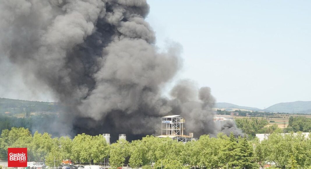 El incendio en la fábrica LEA de Vitoria ha provocado una gran columna de humo, varias explosiones y el confinamiento de los barrios de Abetxuko y Arriaga.
