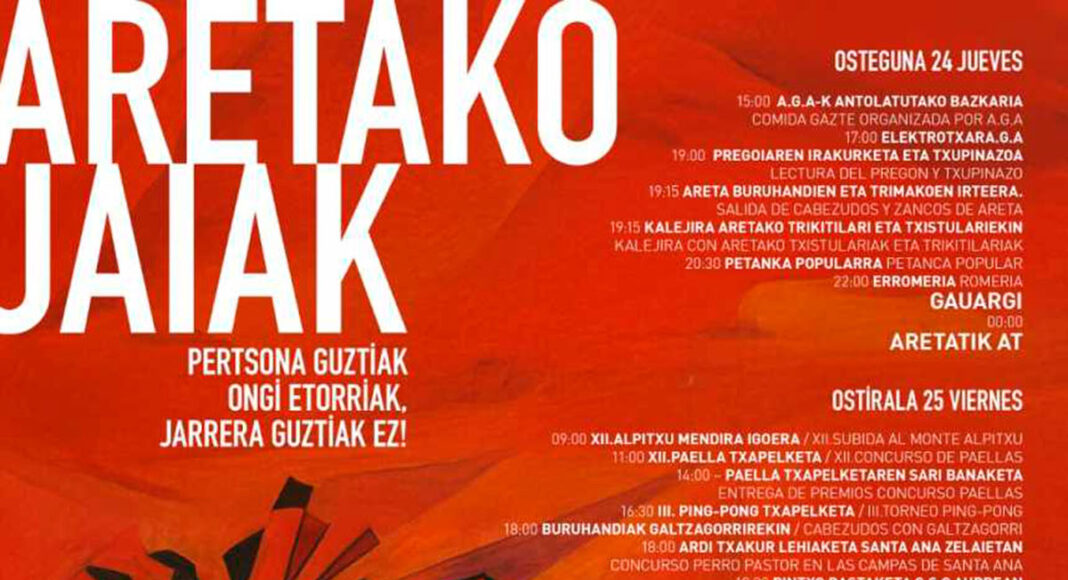 Areta celebrará sus fiestas del 24 al 27 de julio y Ugarte del 31 de julio al 4 de agosto