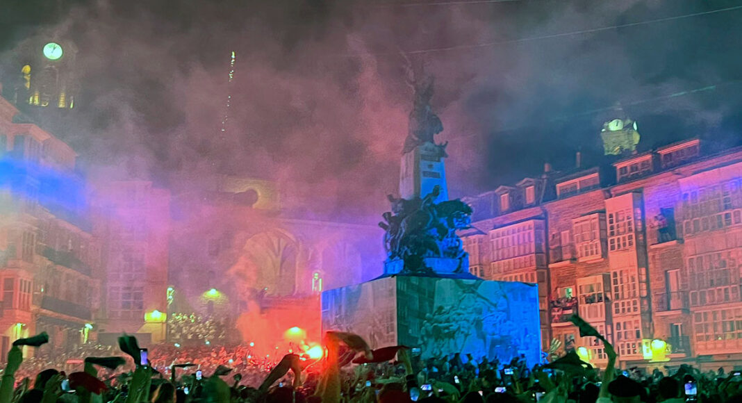 En Vitoria-Gasteiz, la noche festiva ha tenido un cierre marcado por la tradición. A la una de la madrugada, Celedón ha emprendido el ascenso hacia la torre de San Miguel, gesto con el que la ciudad despide oficialmente las Fiestas de La Blanca. La plaza de la Virgen Blanca, llena de gente, ha sido el escenario de un adiós que cada año atrae a más asistentes.