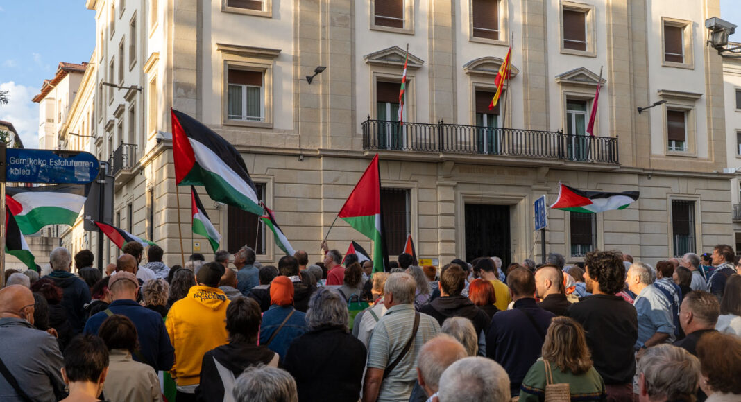 Bajo consignas como “Palestina libre – Palestina aske” y “Flotilla aurrera!”, los manifestantes expresaron su preocupación por la escalada de violencia y exigieron el cese del bloqueo sobre Gaza.