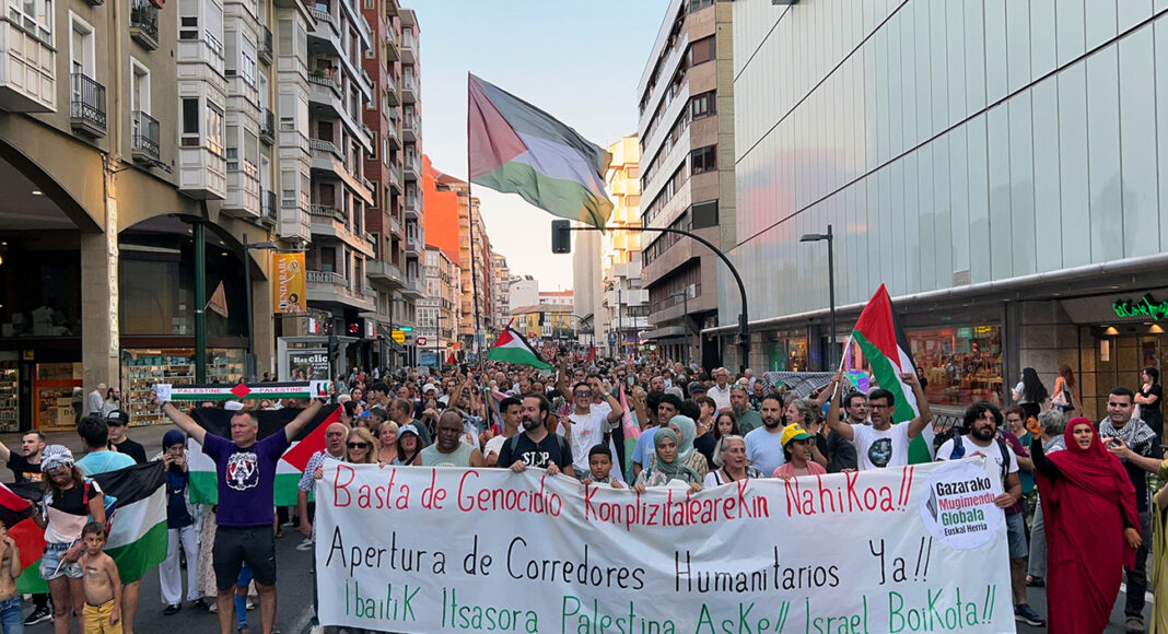 Vitoria-Gasteiz ha vuelto a salir a la calle en apoyo a Palestina. Varios miles de personas se han manifestado este jueves por la tarde en la capital alavesa al grito de “Boikot Israel. Palestina askatu”. La marcha ha estado encabezada por una pancarta en la que se podía leer: “Basta de genocidio, konplizitatearekin nahikoa, apertura de corredores humanitarios. Ibaitik itsasora Palestina aske, Israel boikota”.