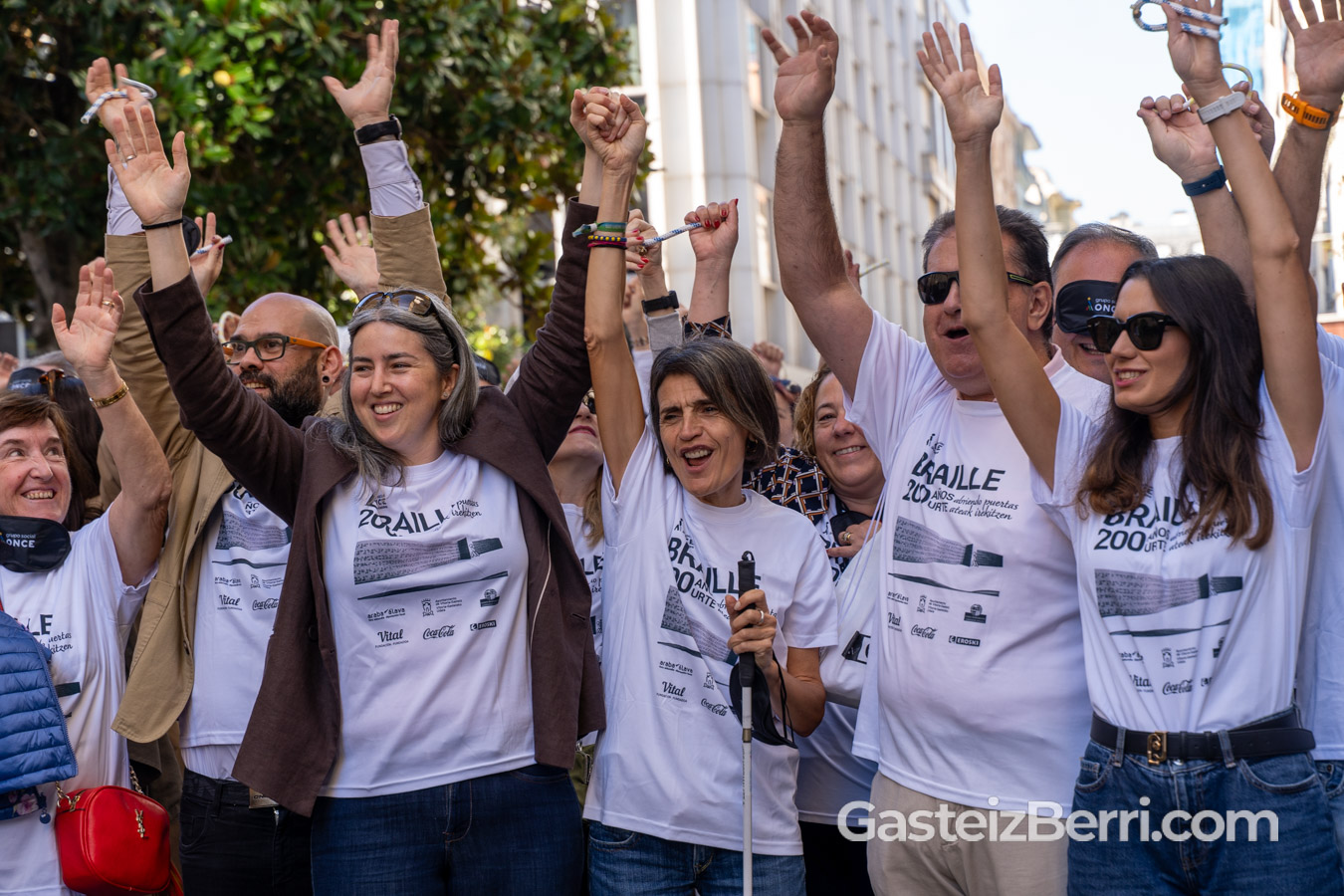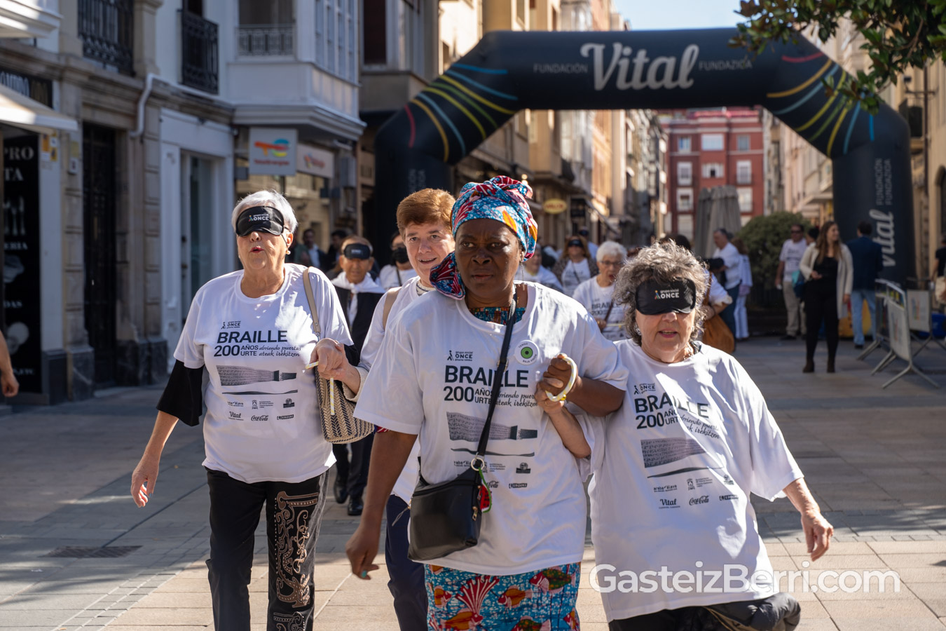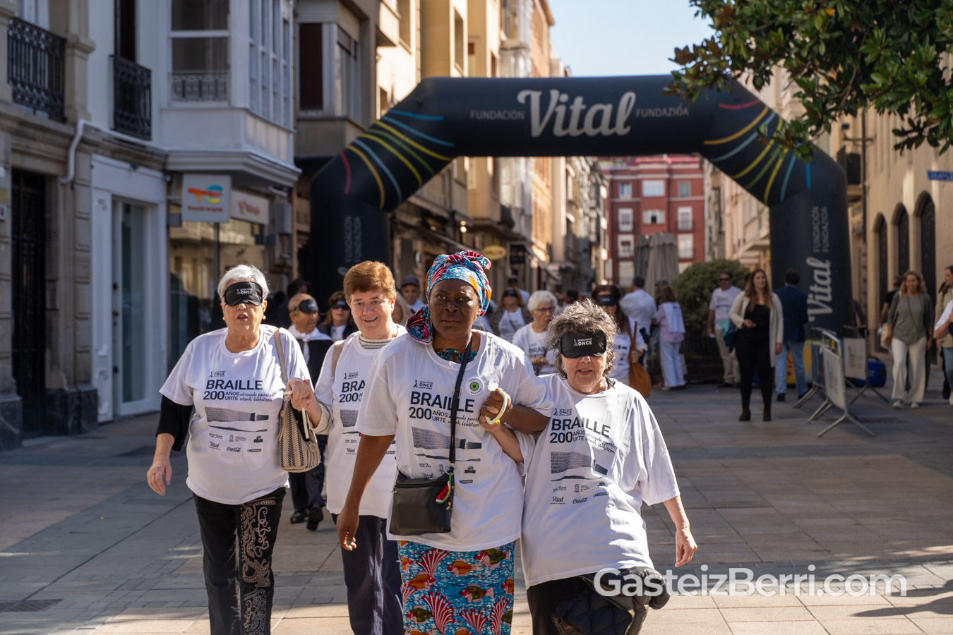 La Plaza del Arca de Vitoria-Gasteiz acogió este sábado la Carrera de Cascabeles 2025 organizada por ONCE Euskadi, bajo el lema ‘Abriendo puertas. Braille 200 años’.