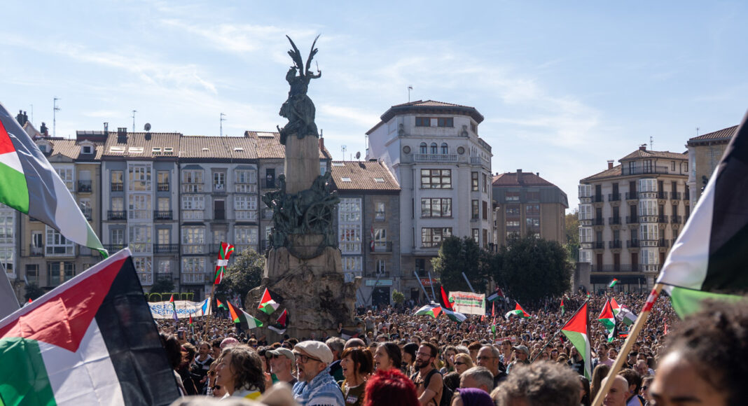 Vitoria-Gasteiz ha vivido este miércoles una jornada de huelga general marcada por una masiva manifestación en apoyo al pueblo palestino. Según los organizadores, alrededor de 25.000 personas han llenado la plaza de la Virgen Blanca y las principales calles del centro en una movilización que ha recorrido las calles Paz, General Álava y Prado antes de regresar a su punto de partida.
