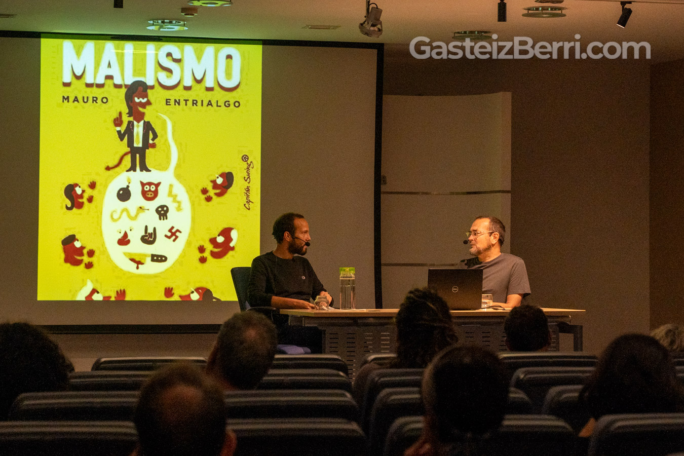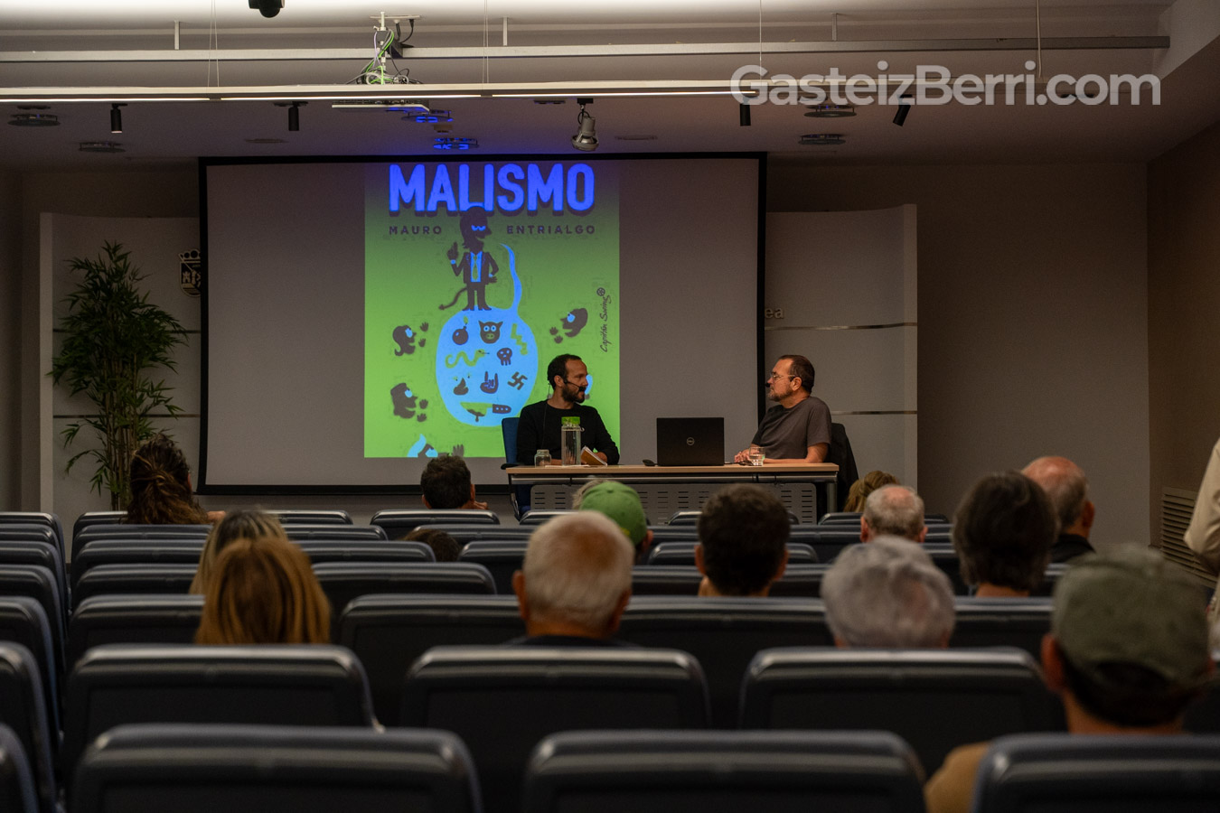 El ilustrador y autor vitoriano Mauro Entrialgo ofreció este martes en la Casa de Cultura Ignacio Aldecoa la conferencia “Un año después de Malismo”, en la que repasó con humor y lucidez los cambios sociales y culturales ocurridos desde la publicación de su ensayo Malismo. La charla reunió a numeroso público y estuvo marcada por el tono crítico y cercano que caracteriza al creador.
