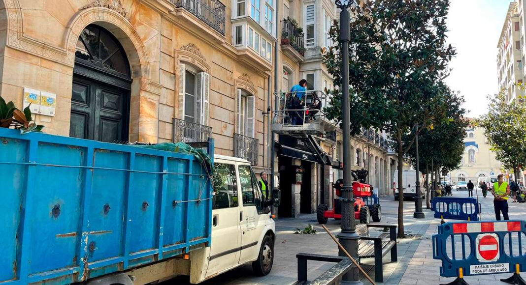 El Ayuntamiento inicia la poda de magnolios en la calle Dato para ganar visibilidad, luz y seguridad en una de las vías más emblemáticas del centro.
