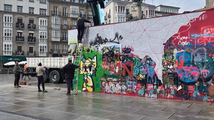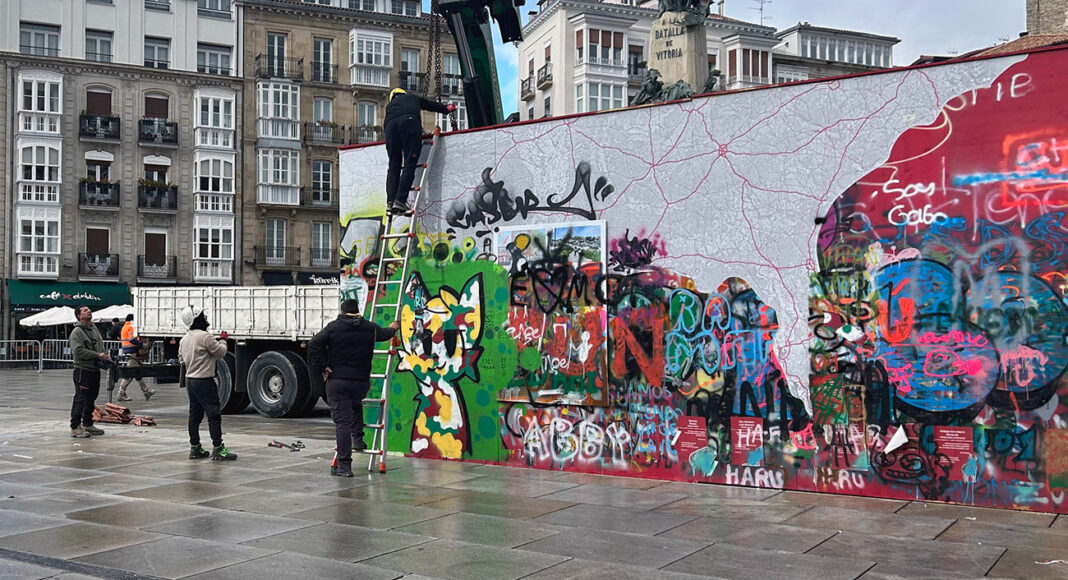 Este miércoles ha desaparecido de la plaza de la Virgen Blanca el muro instalado como parte de la Bienal Internacional de Arquitectura Mugak. Concebido como un espacio de participación ciudadana y expresión libre, ha terminado convirtiéndose en uno de los elementos más polémicos del año en Vitoria-Gasteiz.