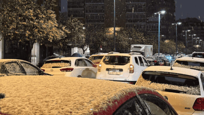 La nieve en Vitoria-Gasteiz ha llegado puntual a su cita este viernes. La ciudad se ha despertado con tejados blancos y una fina capa que ha cubierto tejados y coches, cumpliéndose así las previsiones del aviso amarillo por nieve emitido por Euskalmet.