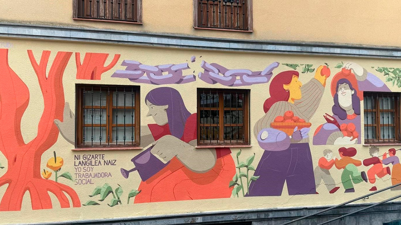 El Casco Viejo de Vitoria-Gasteiz suma estos días una nueva intervención artística. En la fachada de la sede del Colegio de Trabajo Social de Álava, situada en el Cantón de las Carnicerías, perpendicular a la calle Zapatería, ya se puede ver una ilustración creada por la artista Galleta Maria (@galletamaria_pinta). El mural nace con un propósito claro: visibilizar la profesión del Trabajo Social en un momento en el que, según explican, su papel resulta “fundamental para garantizar el bienestar y la cohesión social”.