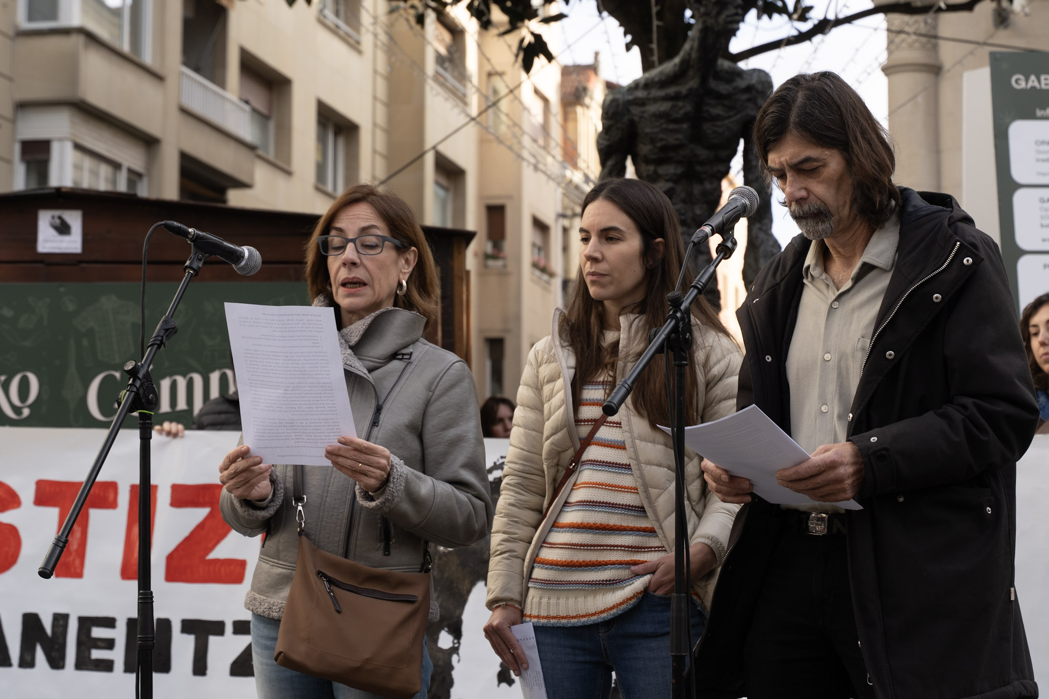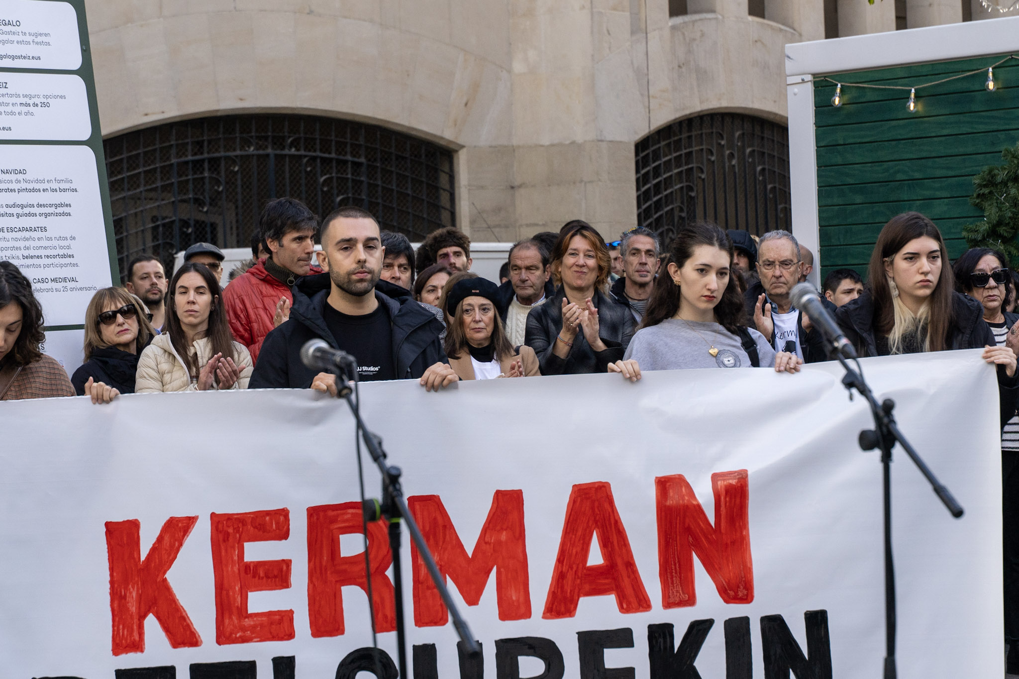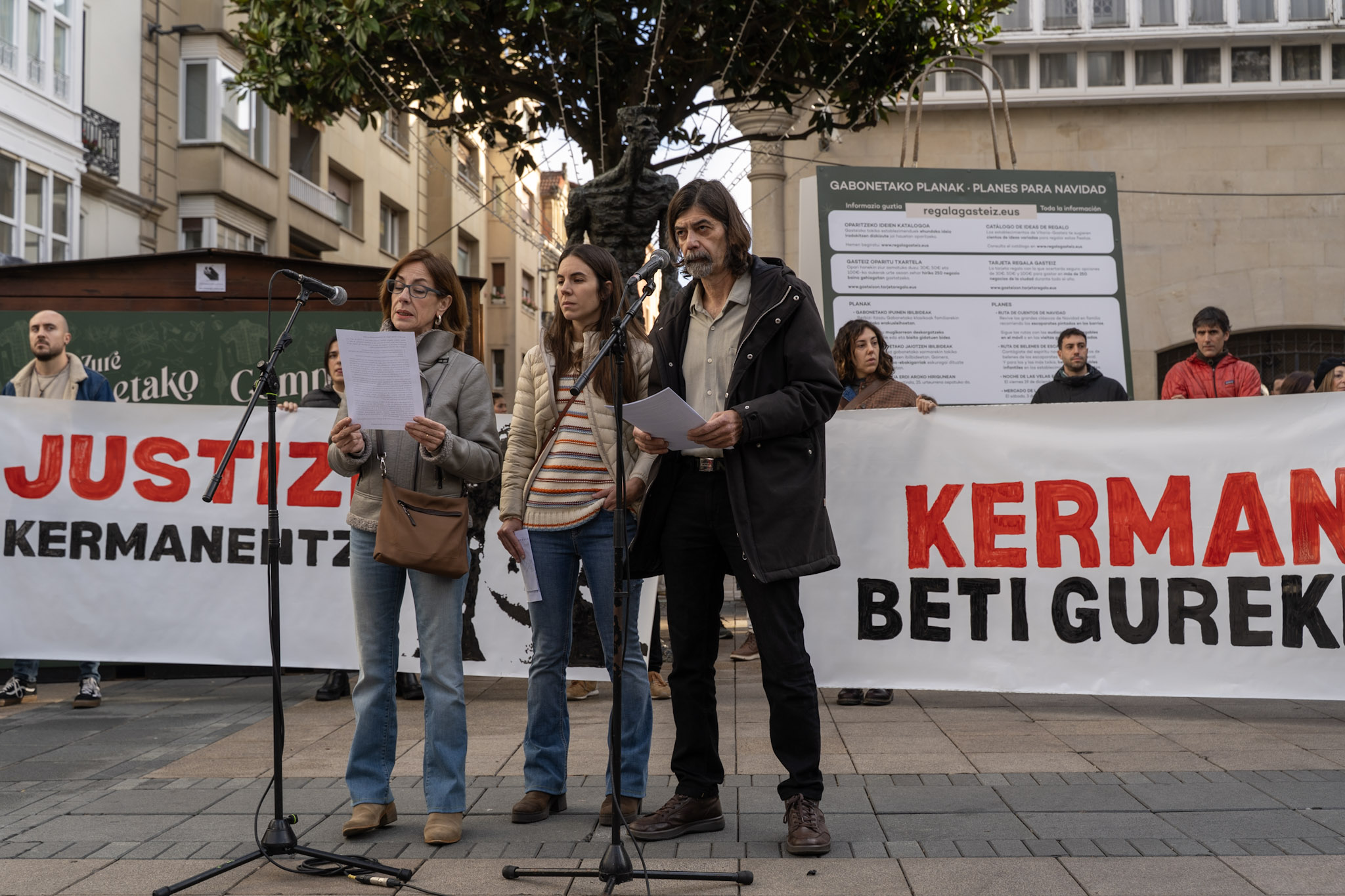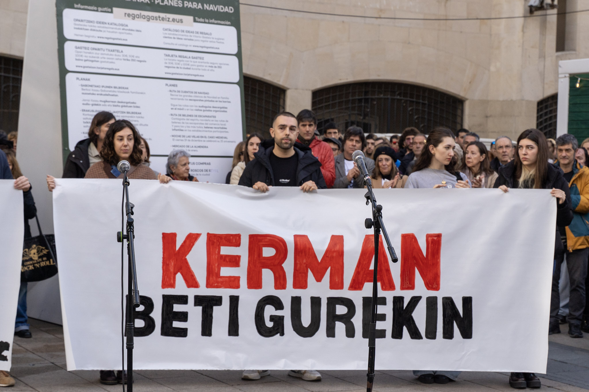“Ningún amigo, ninguna familia quisiera pasar por el trance de tener que convocar este acto”, han comenzado leyendo los padres de Kerman. “Pero la decisión de la Audiencia Provincial, de dejar en libertad al autor de la muerte de Kerman y de rebajarle los cargos, nos ha obligado a ello”.
