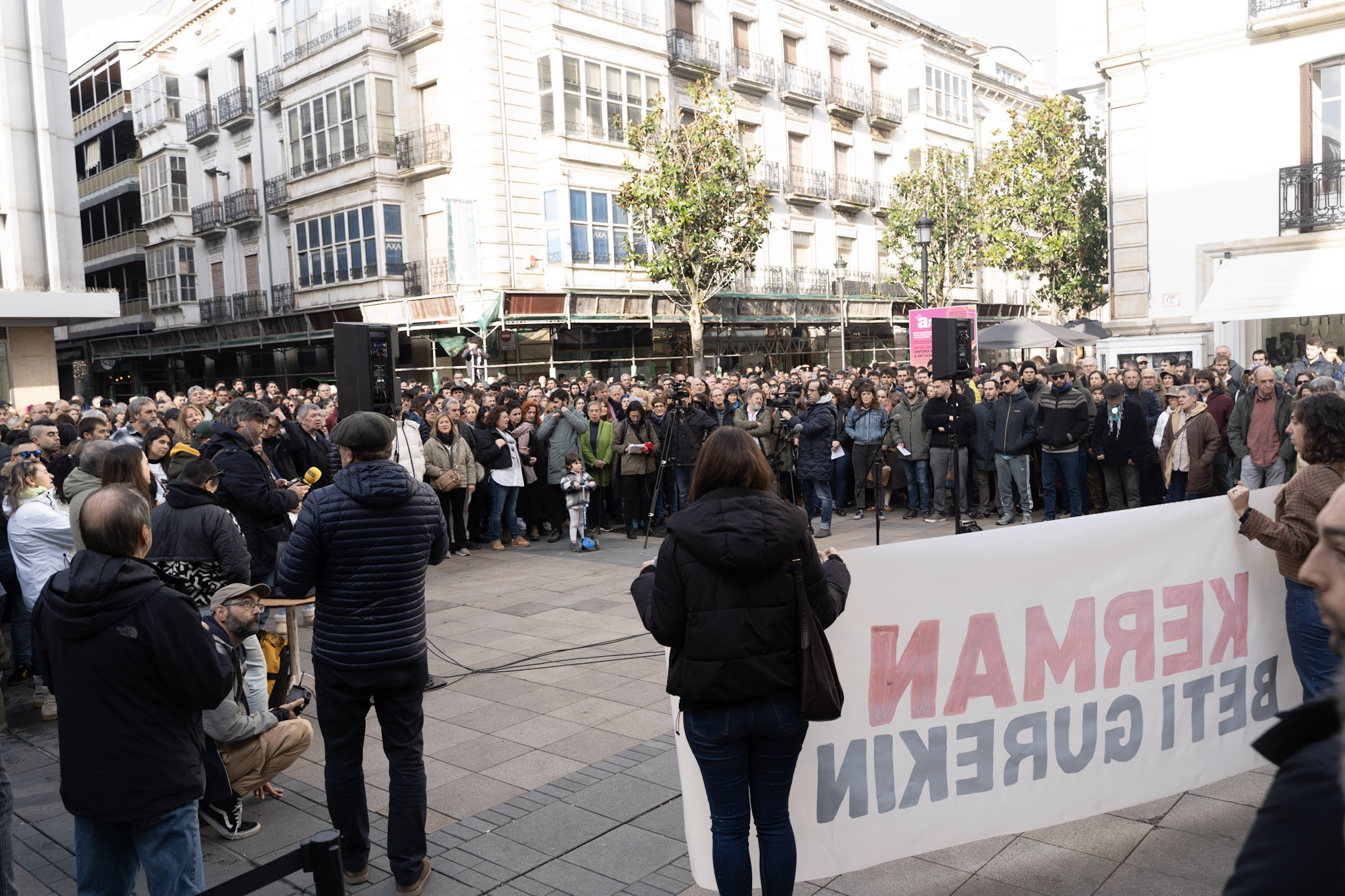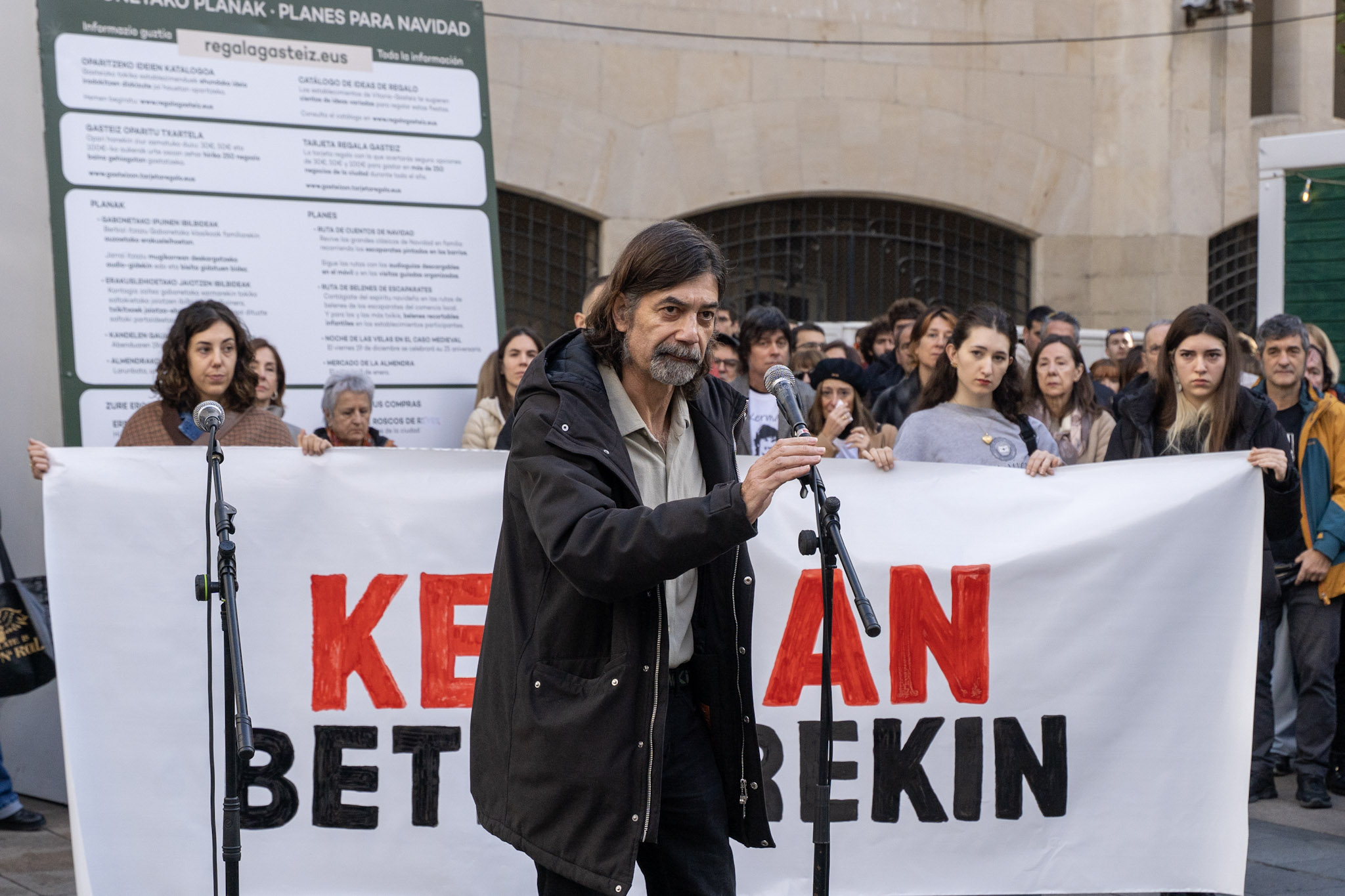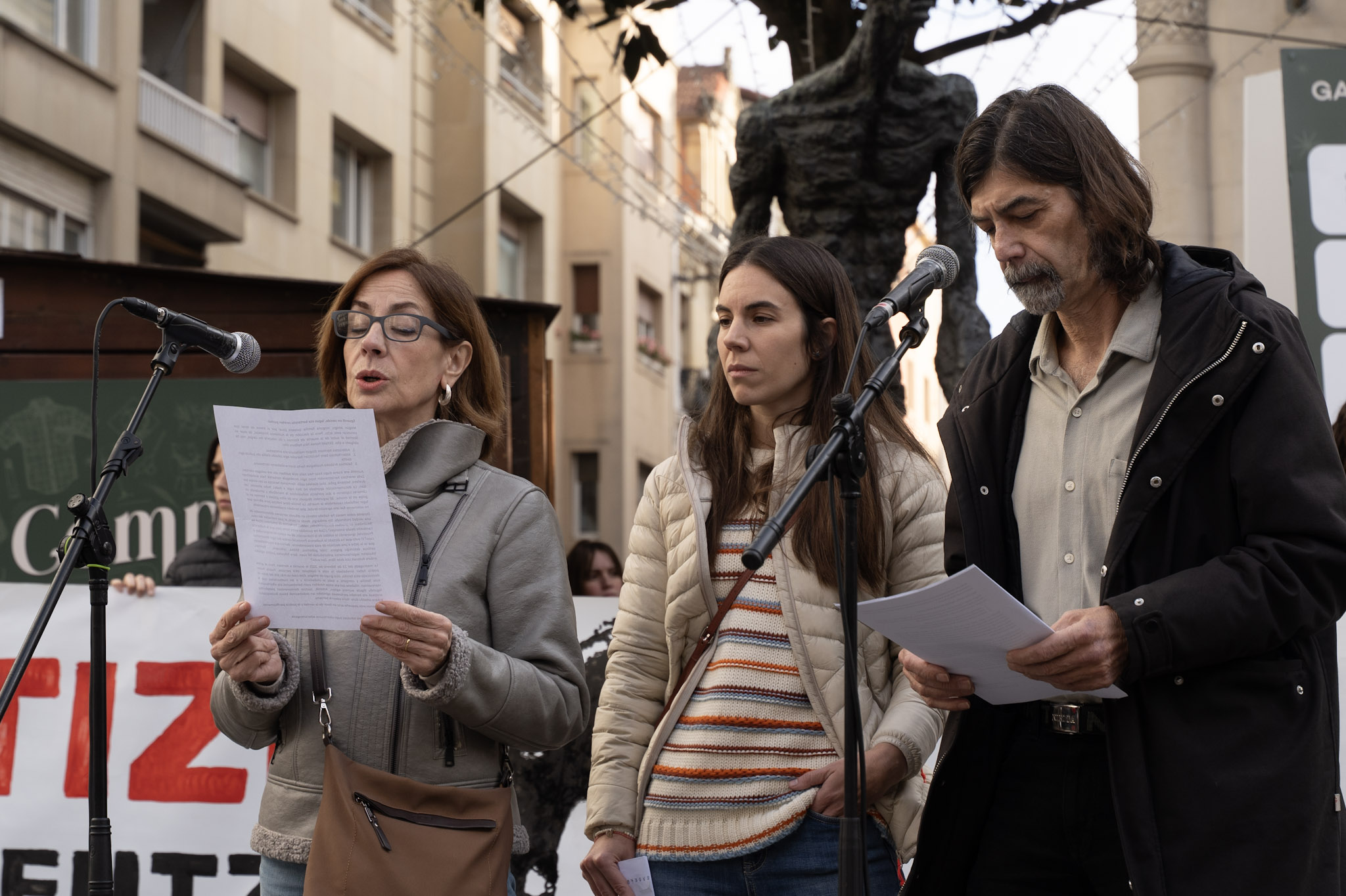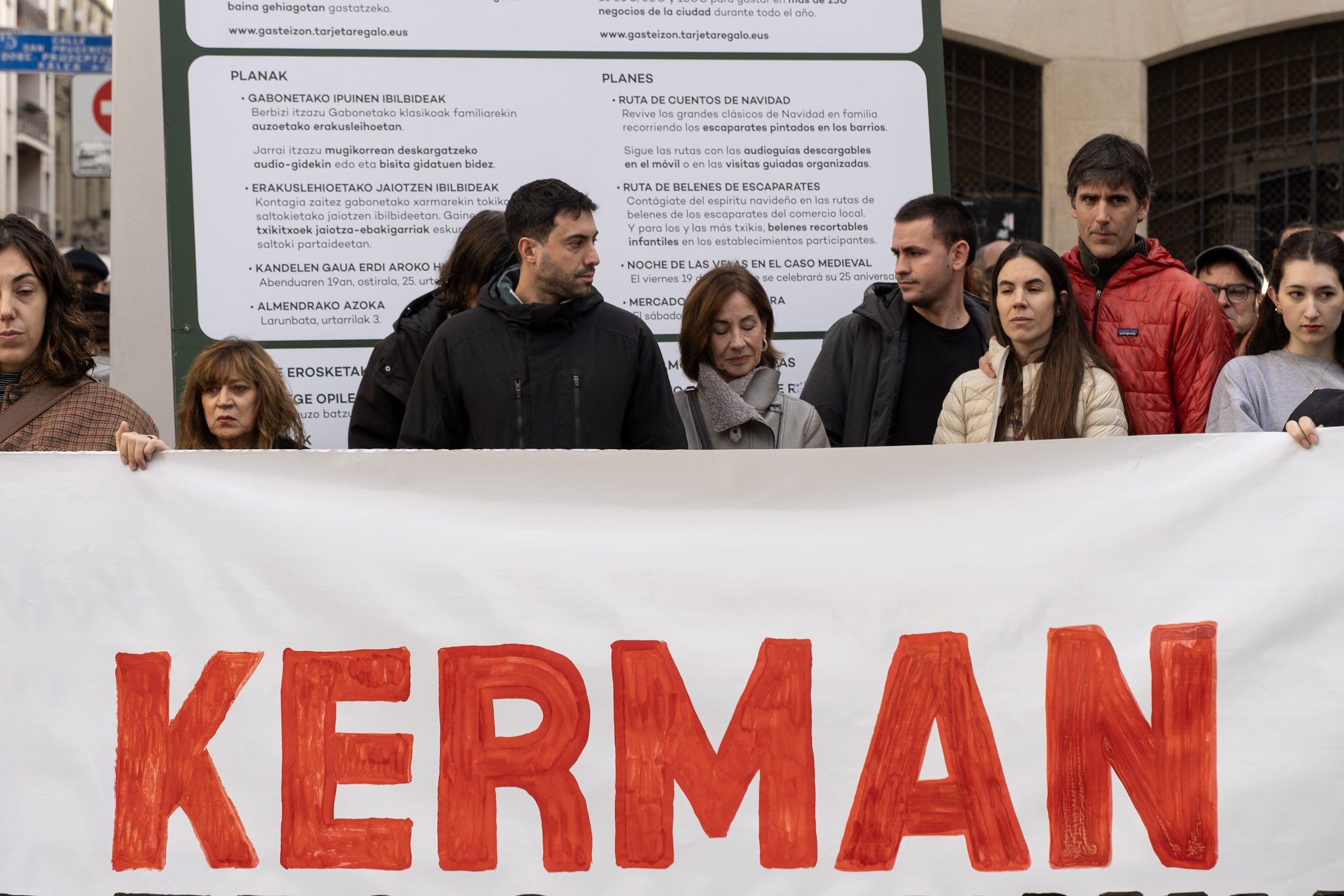 “Ningún amigo, ninguna familia quisiera pasar por el trance de tener que convocar este acto”, han comenzado leyendo los padres de Kerman. “Pero la decisión de la Audiencia Provincial, de dejar en libertad al autor de la muerte de Kerman y de rebajarle los cargos, nos ha obligado a ello”.