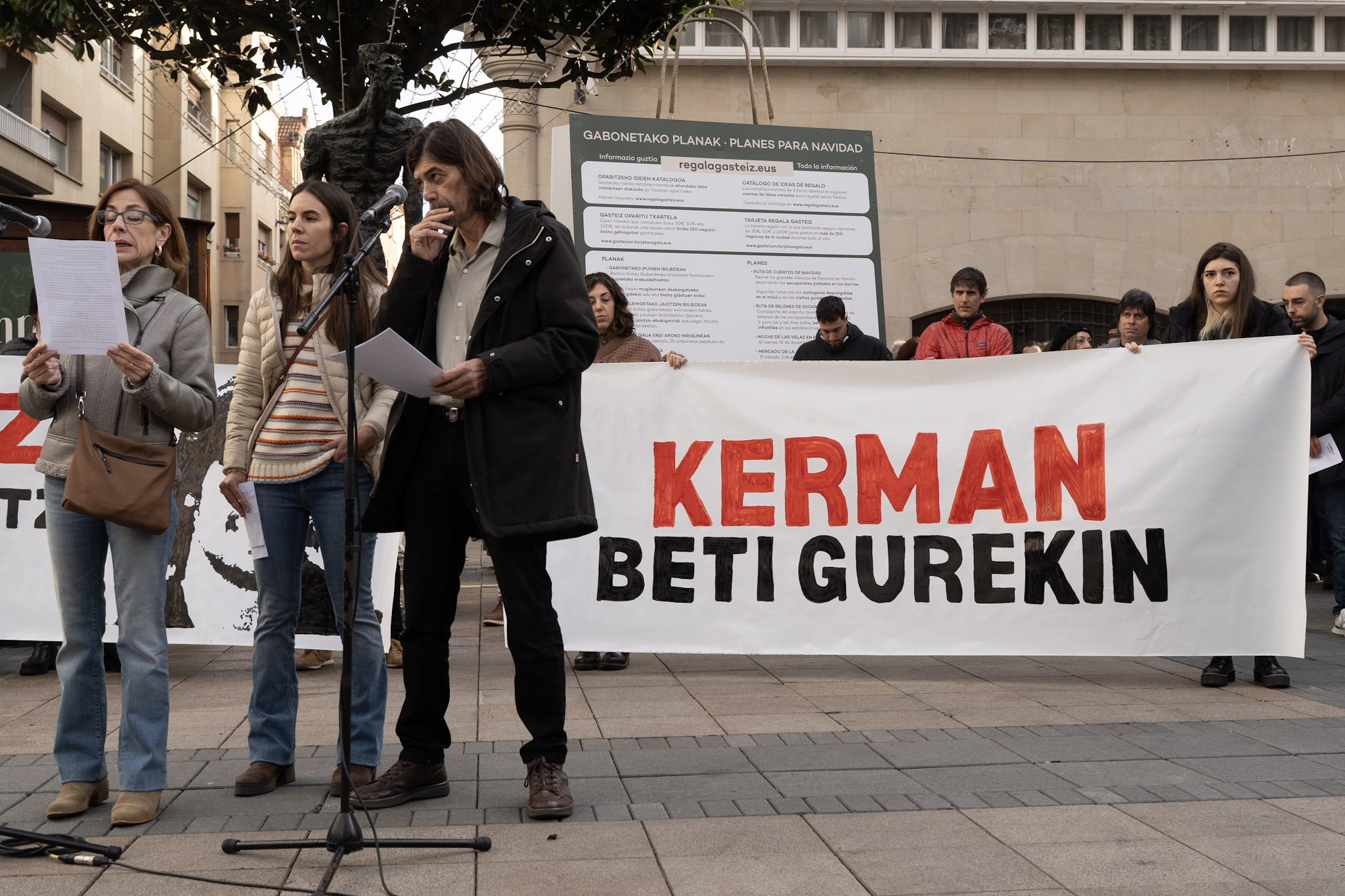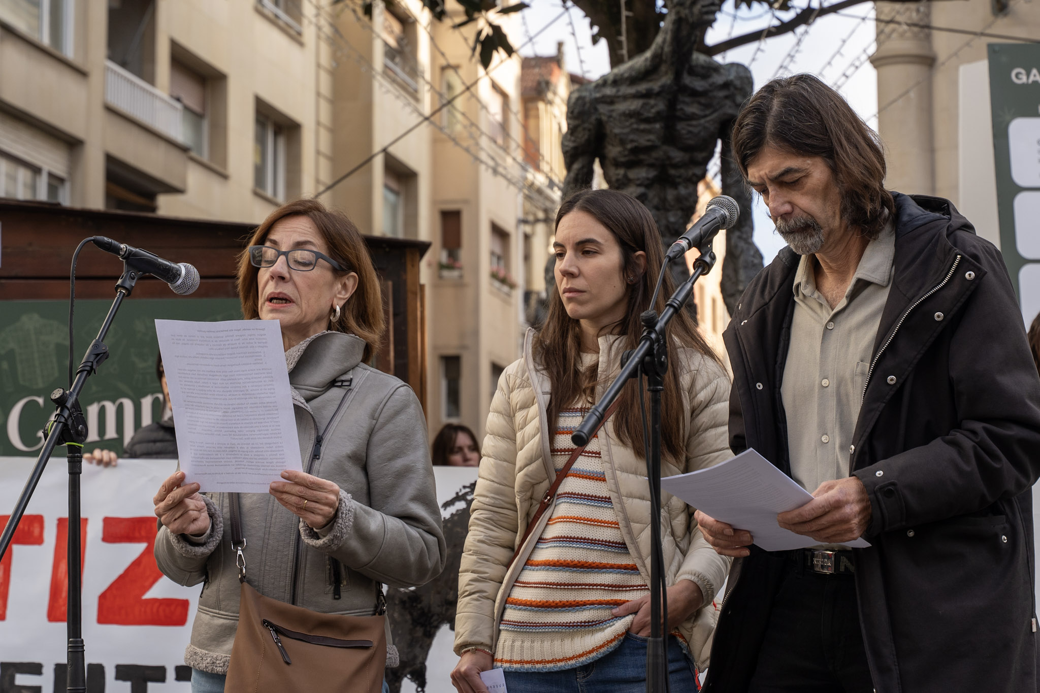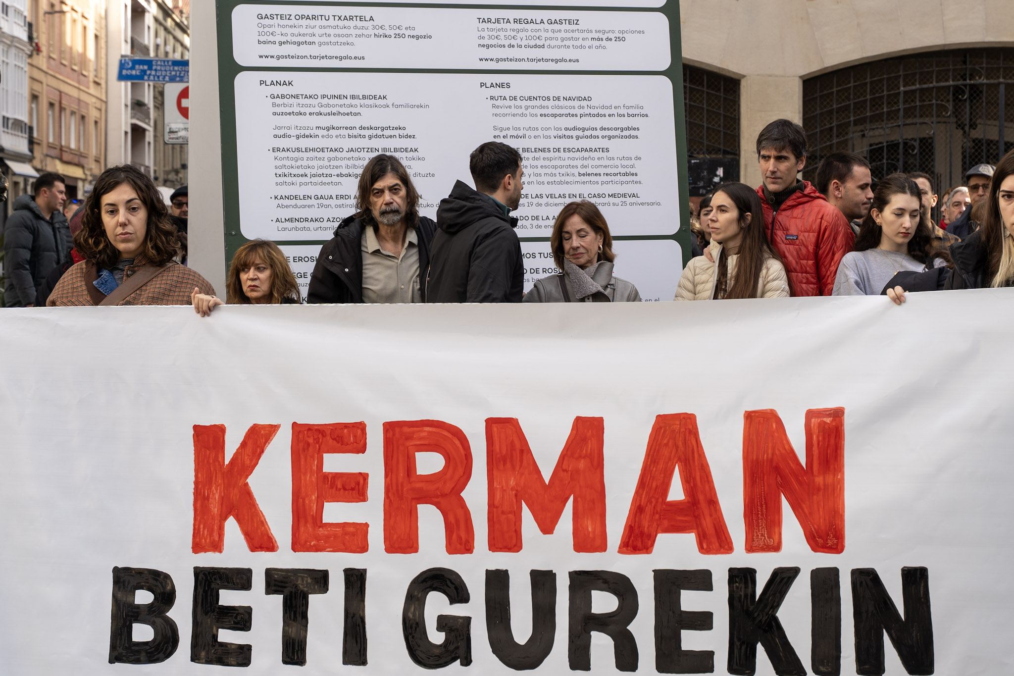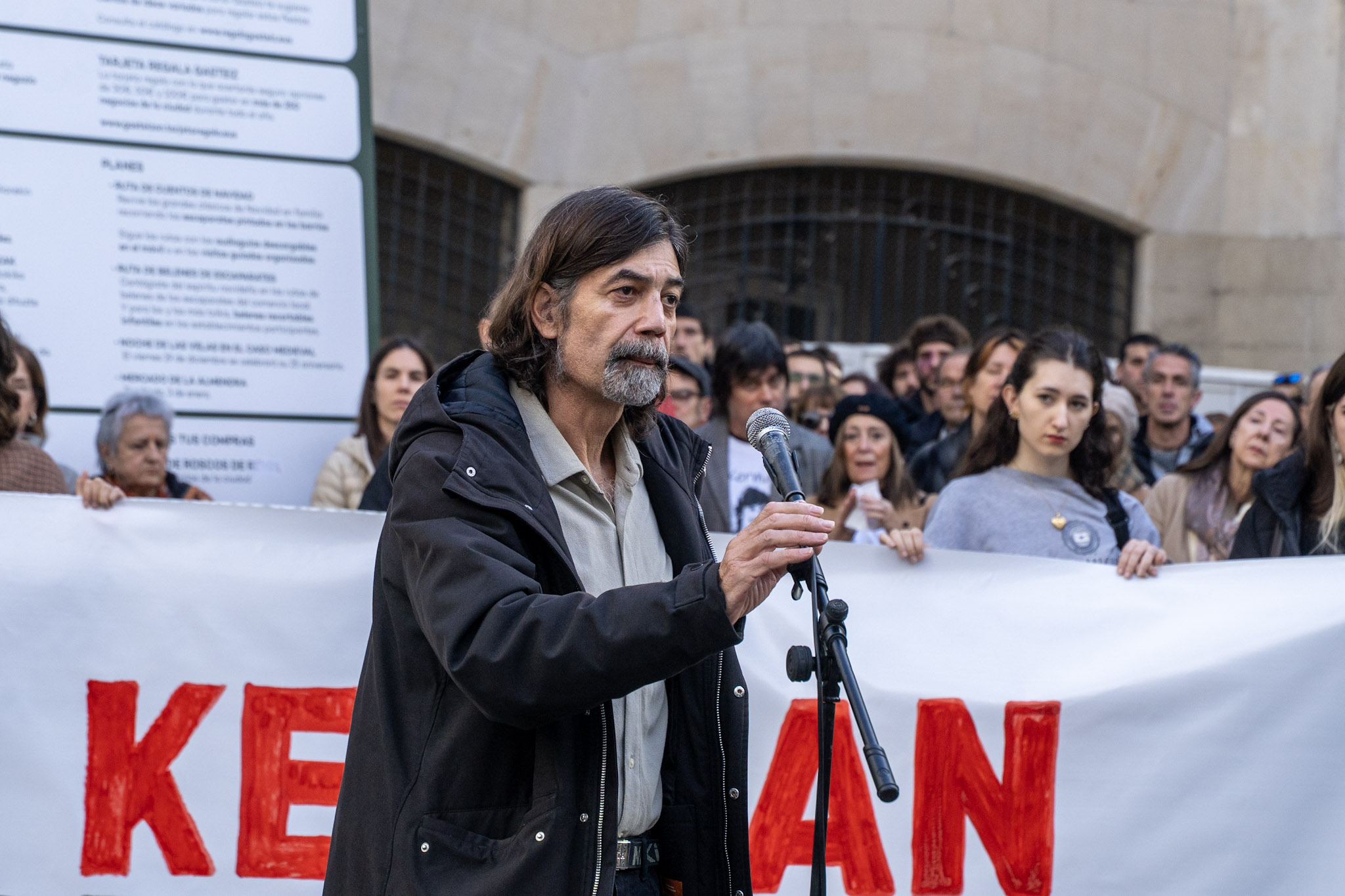 “Ningún amigo, ninguna familia quisiera pasar por el trance de tener que convocar este acto”, han comenzado leyendo los padres de Kerman. “Pero la decisión de la Audiencia Provincial, de dejar en libertad al autor de la muerte de Kerman y de rebajarle los cargos, nos ha obligado a ello”.
