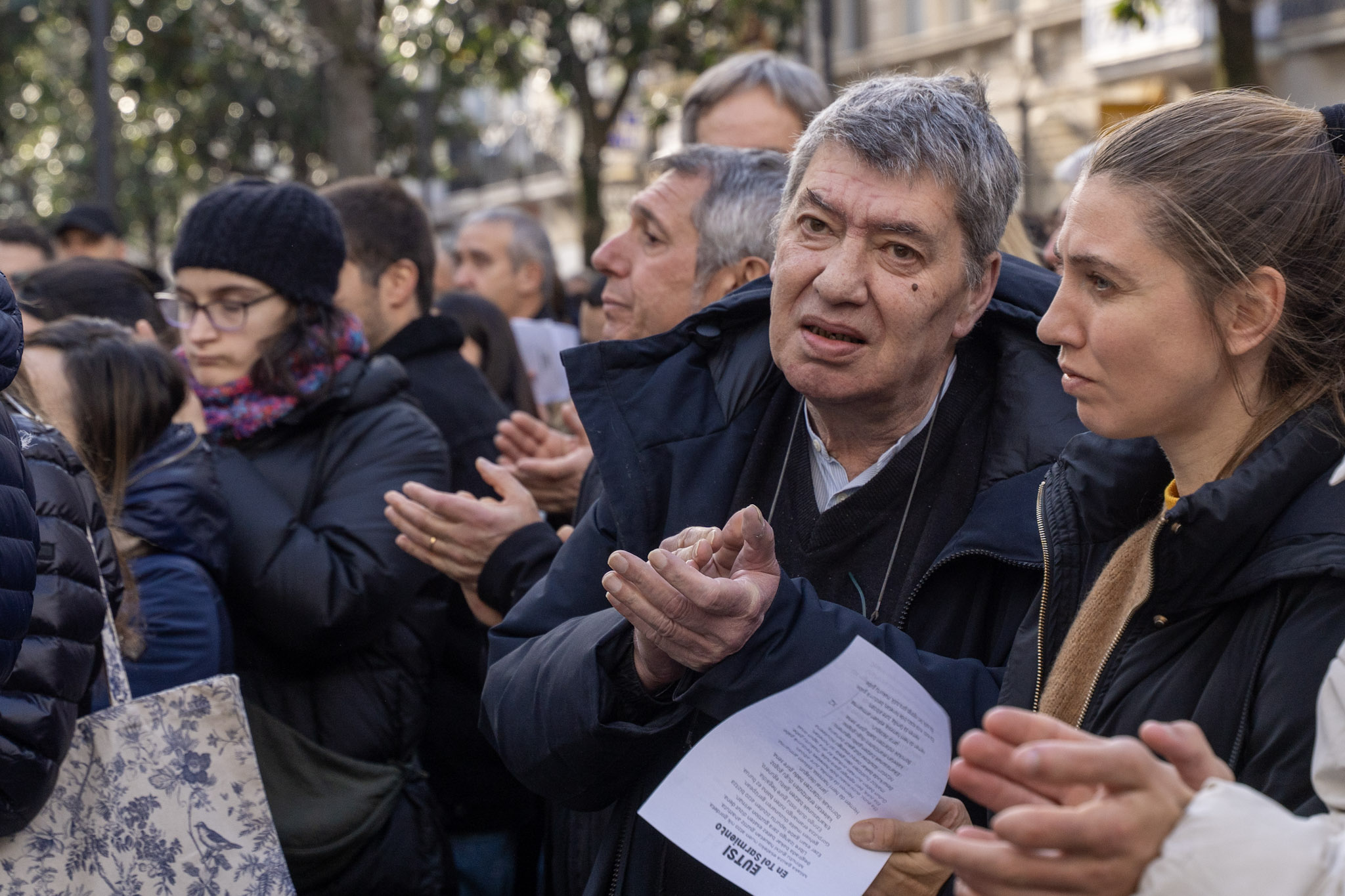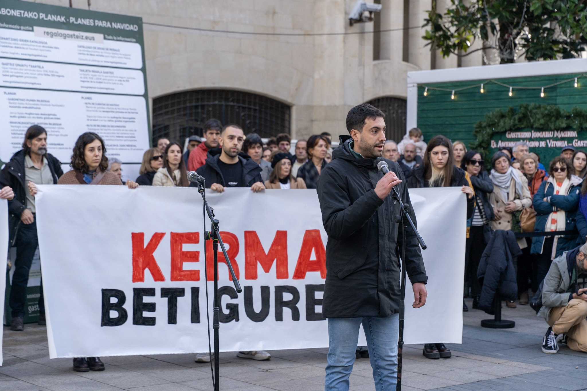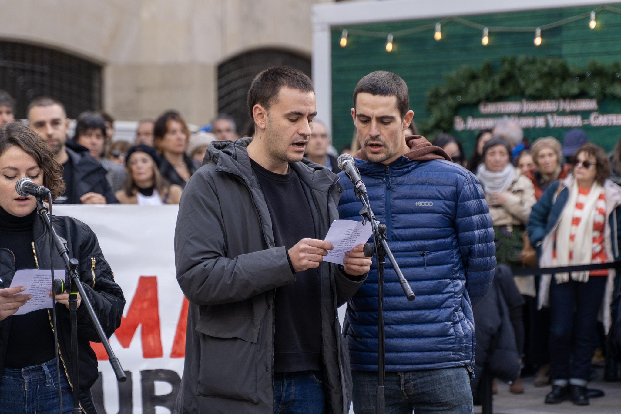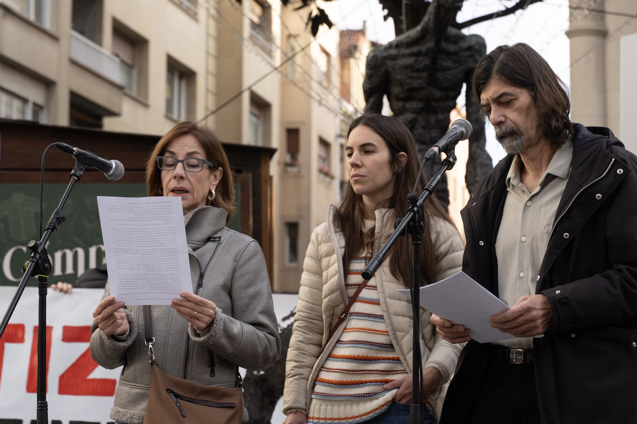 “Ningún amigo, ninguna familia quisiera pasar por el trance de tener que convocar este acto”, han comenzado leyendo los padres de Kerman. “Pero la decisión de la Audiencia Provincial, de dejar en libertad al autor de la muerte de Kerman y de rebajarle los cargos, nos ha obligado a ello”.