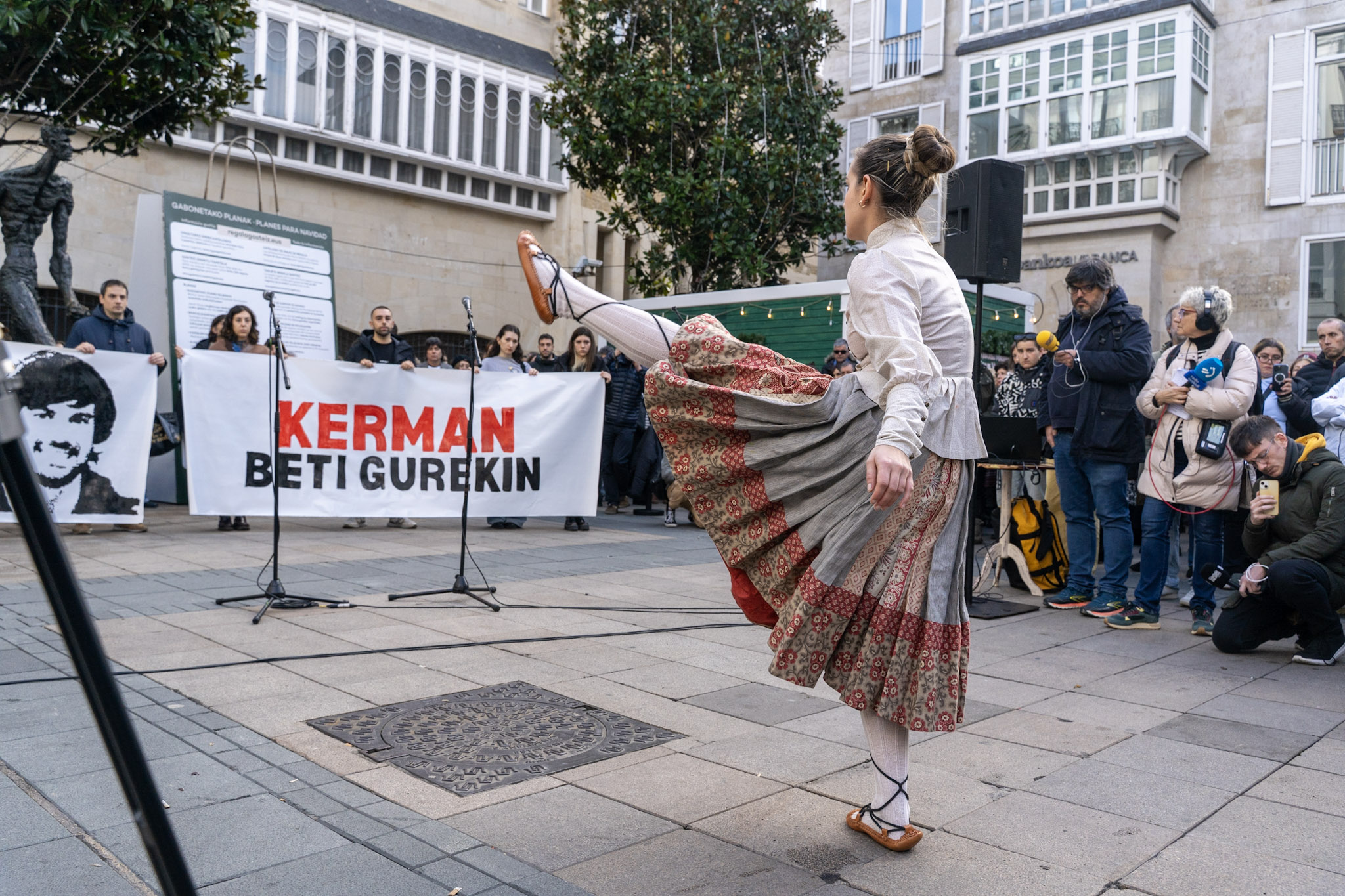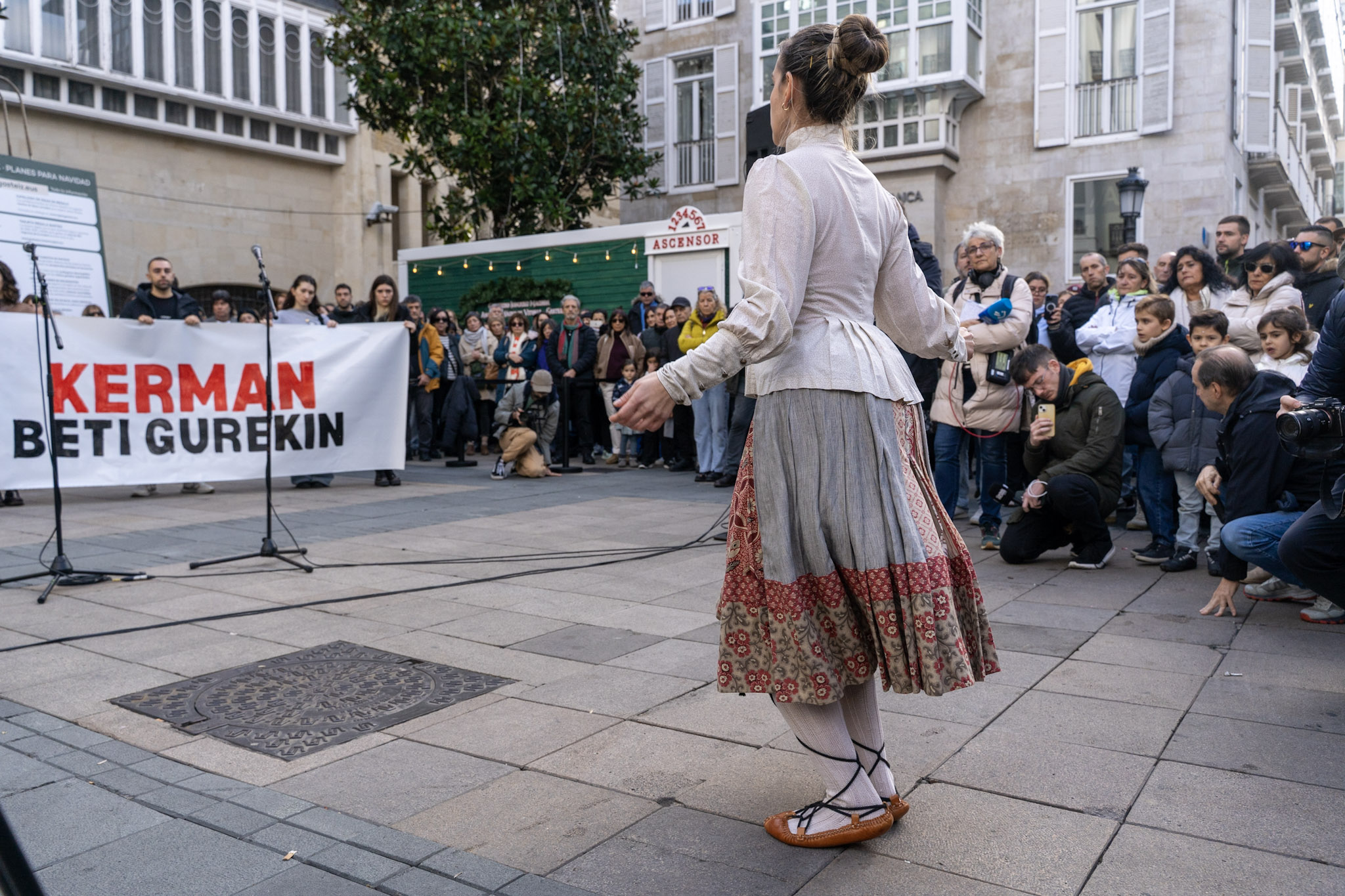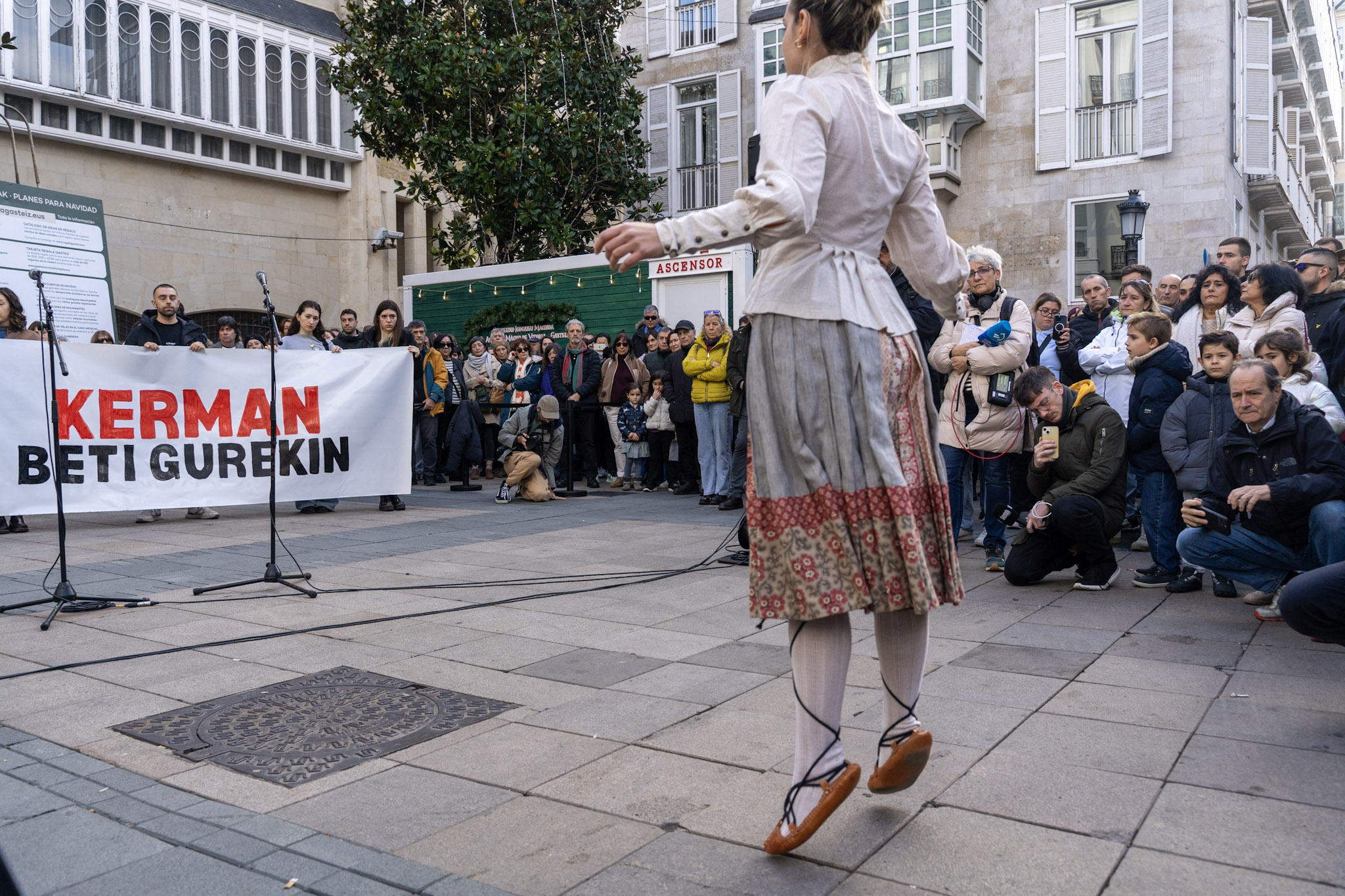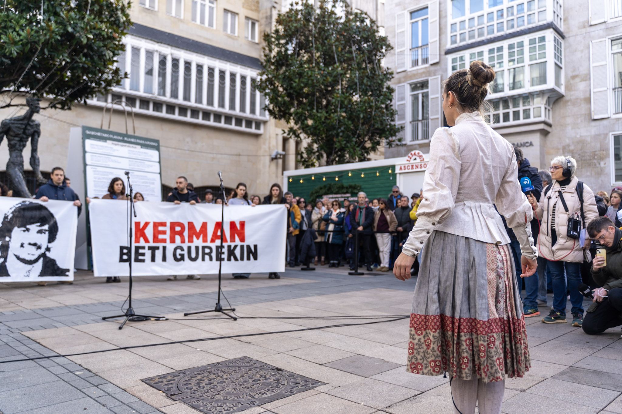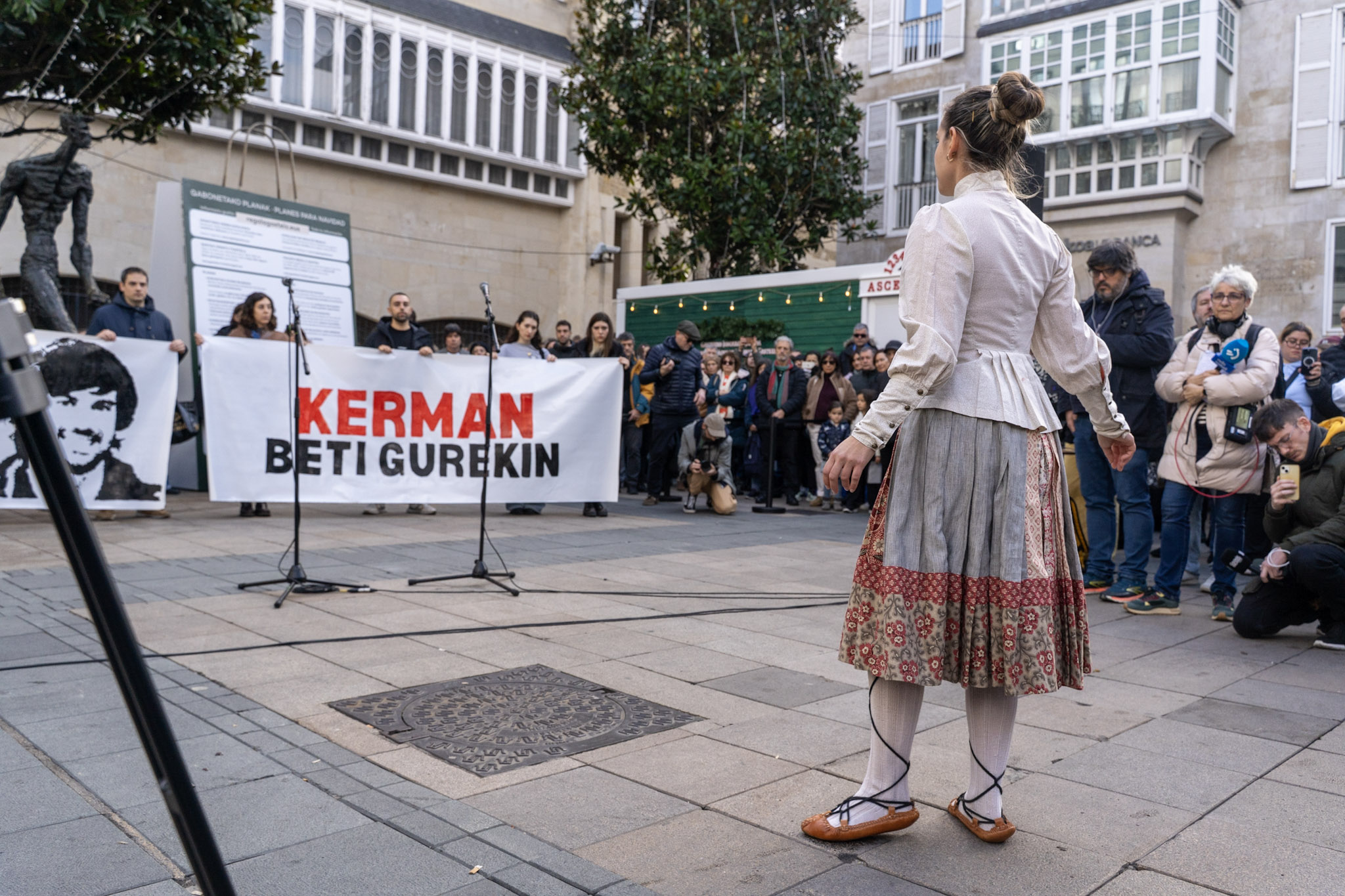 El acto, que se ha prolongado durante aproximadamente veinte minutos, ha estado cargado de emoción. Amigos de Kerman, visiblemente afectados, han cantado dos bertsos en su memoria, mientras que un dantzari ha bailado un aurresku de honor en reconocimiento a la familia.