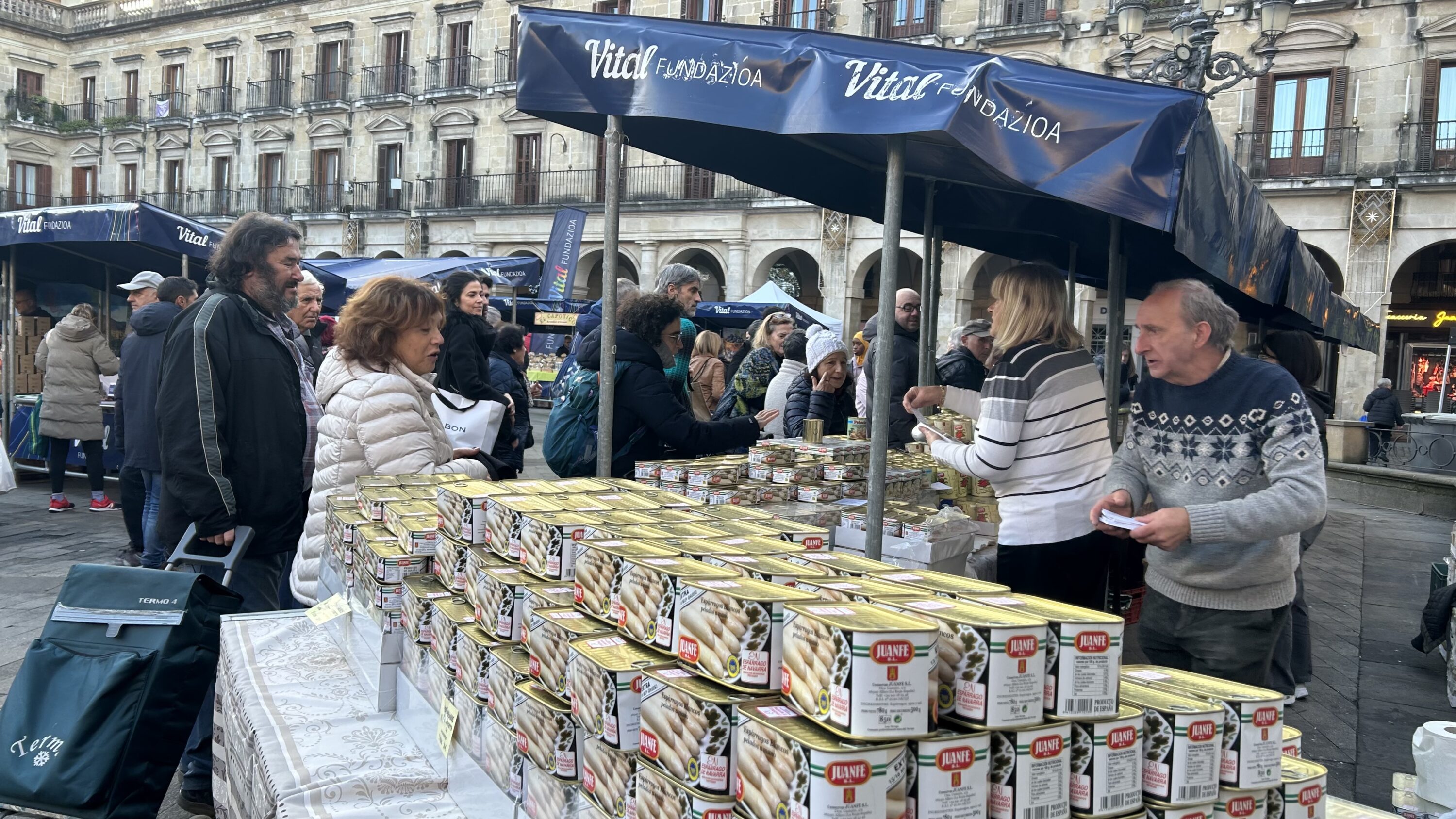 En los puestos instalados en la Plaza de España, hay espacio para quesos, embutidos, vino, miel, sal de Añana, trufa negra, conservas, repostería, legumbres, y delicias recién hechas como talos, tartas, postres creativos y chocolate caliente. Casi la mitad de los vendedores proceden de Álava, lo que refuerza el carácter local de este mercado tradicional.