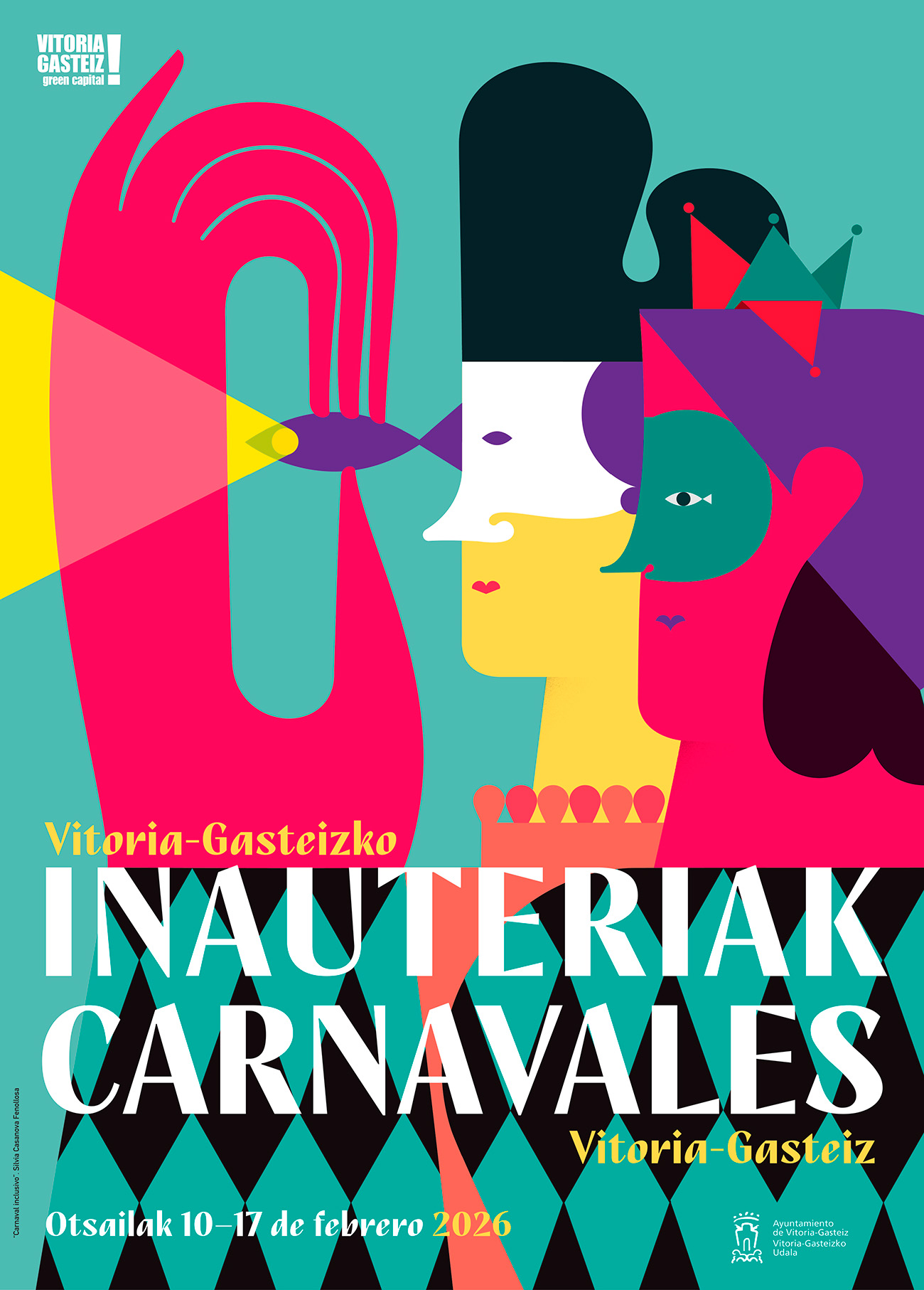 Vitoria-Gasteiz ya cuenta con el cartel que anunciará las fiestas de Carnaval de este año, que se celebrarán entre el 10 y el 17 de febrero. La obra elegida lleva por título ‘Carnaval inclusivo’ y es obra de la diseñadora e ilustradora Silvia Casanova Fenollosa, cuya propuesta se ha impuesto en el concurso convocado por el Ayuntamiento.