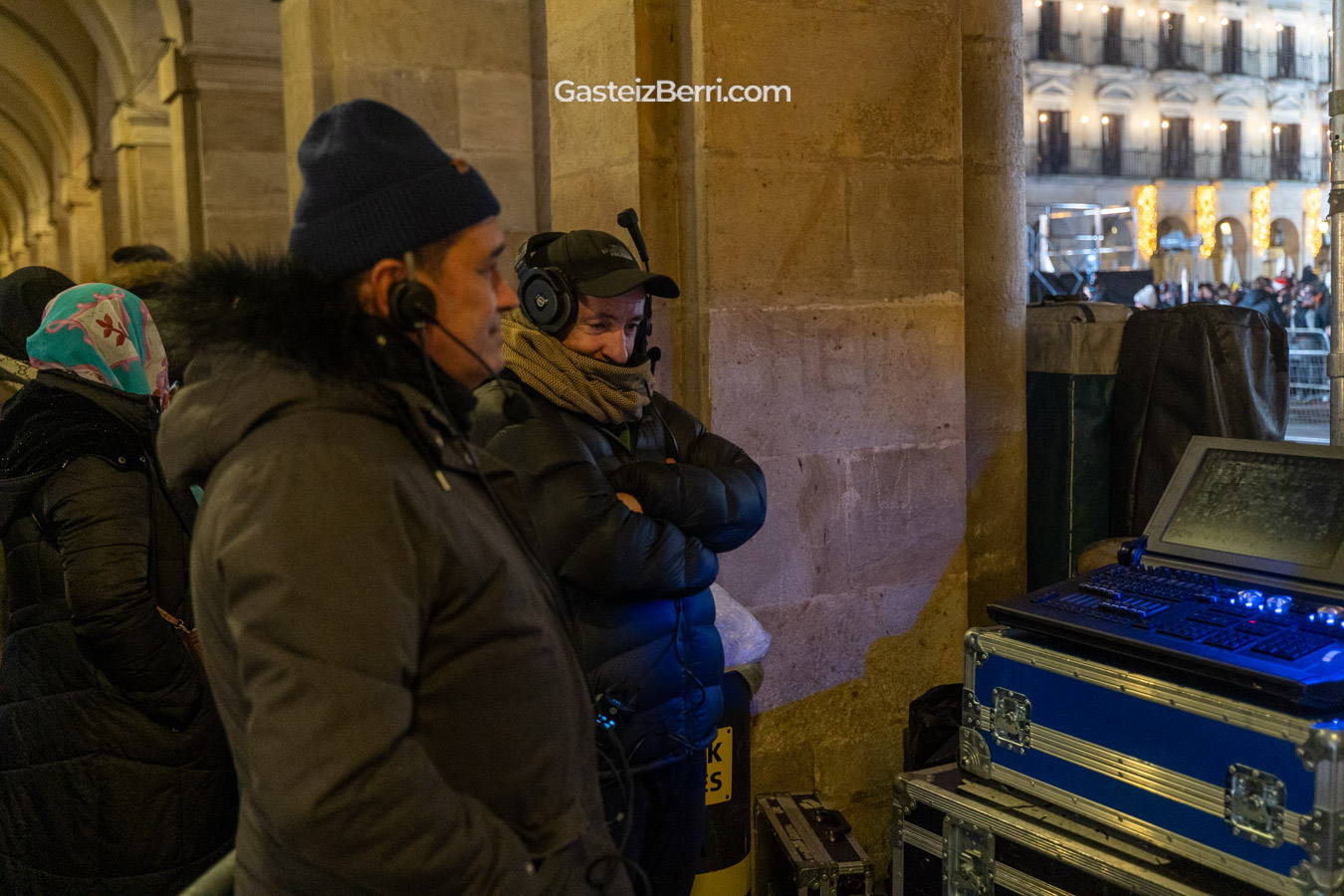 Además, se realizó una actuación muy especial desde la Catedral de Santa María. Aiora Renteria, vocalista de Zea Mays, y Francis de Doctor Deseo interpretaron juntos el tema Corazón de Tango, aportando una nota musical única a la despedida del año.