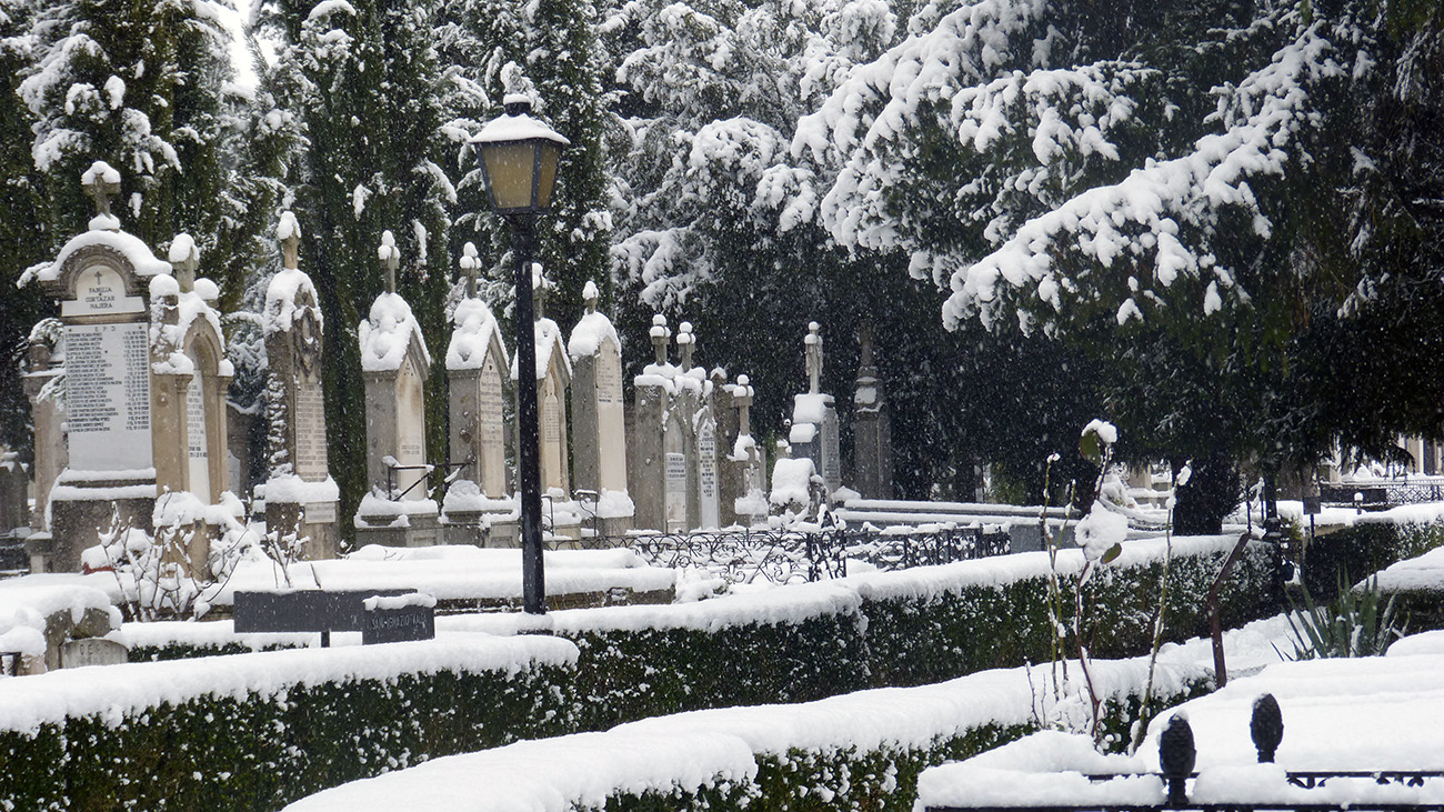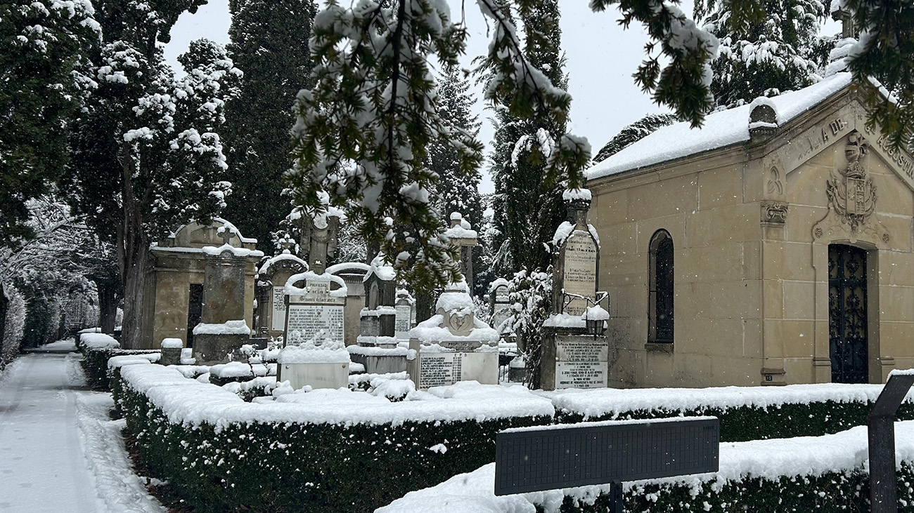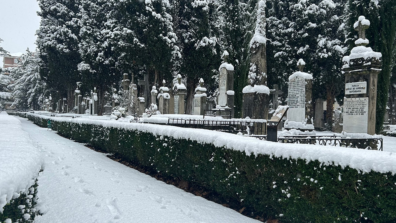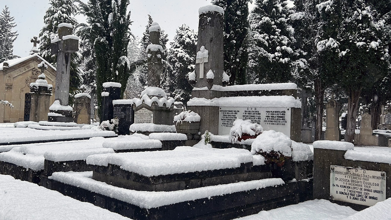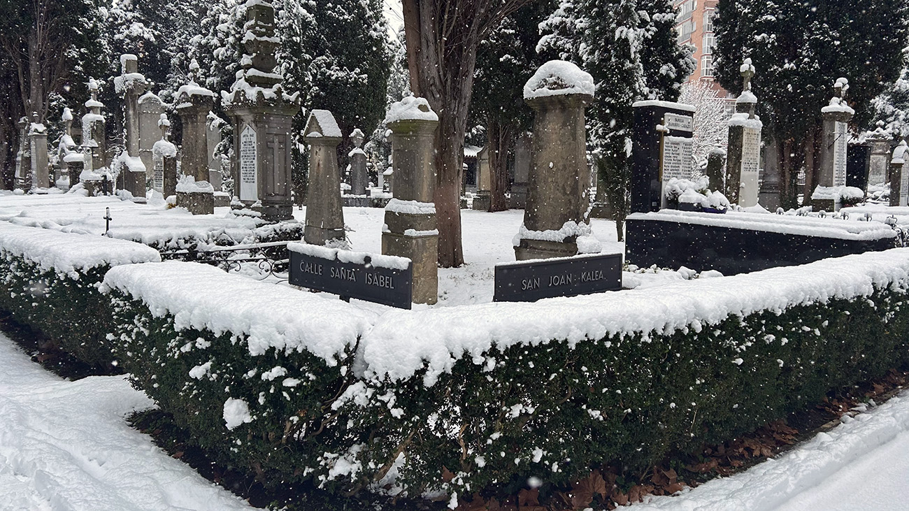 Vitoria-Gasteiz ha amanecido este martes envuelta en un manto blanco que ha cubierto calles, parques y también el cementerio de Santa Isabel. Aunque la nevada estaba prevista, la imagen que ha dejado a primera hora del día ha sorprendido por su belleza y su intensidad.
