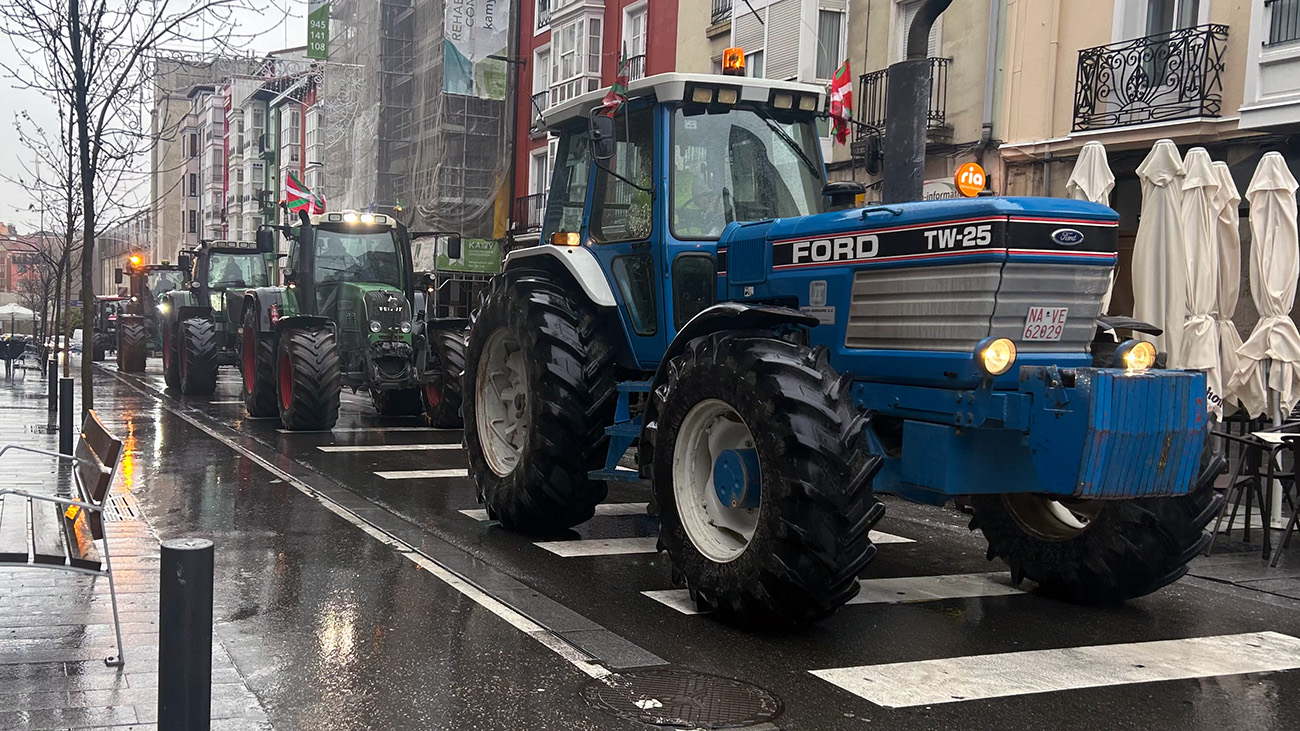 Un total de 80 tractores han llegado este viernes hasta la calle Olaguíbel, en pleno centro de Vitoria-Gasteiz, como parte de una protesta del sector primario alavés frente a la subdelegación del Gobierno en Álava. La movilización se enmarca en el rechazo al acuerdo comercial con Mercosur, que ha recibido hoy el respaldo mayoritario de los países de la Unión Europea.
