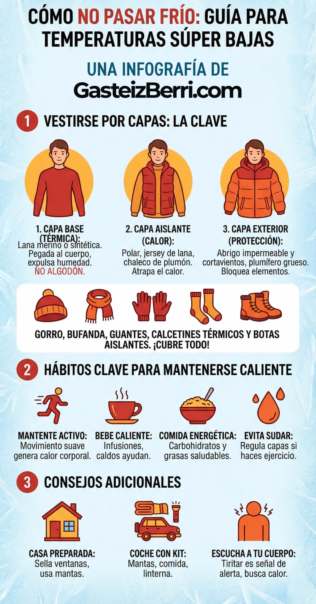 Euskalmet prevé para hoy una máxima de 3°C y una mínima de -3°C, con heladas débiles a moderadas durante la noche. El cielo estará muy nublado, aunque no se esperan precipitaciones. Se recomienda a las familias que acudan a la cabalgata abrigarse con varias capas, guantes y gorro.
