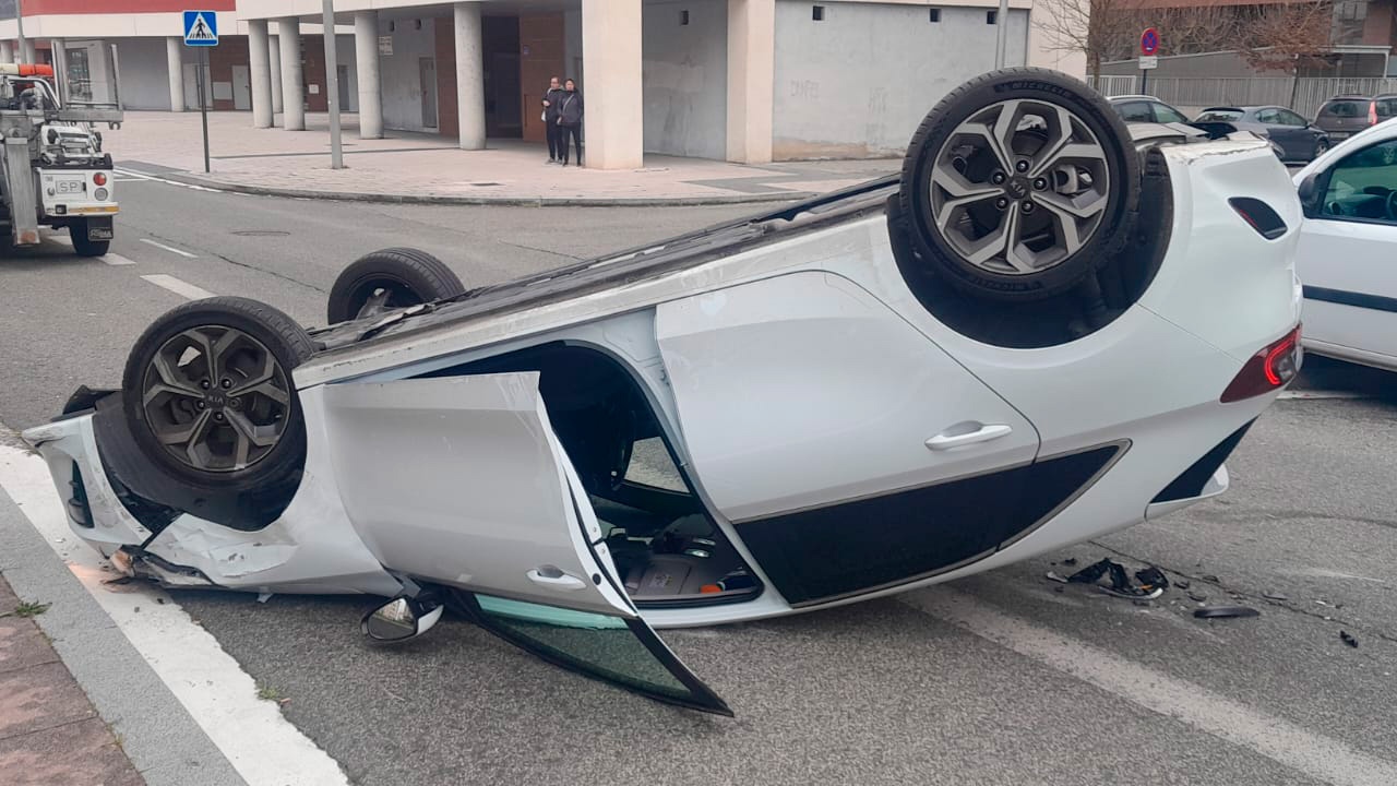 Un hombre de 43 años está siendo investigado por un presunto delito contra la seguridad vial después de que su vehículo volcara en la Avenida 8 de Marzo de Vitoria-Gasteiz en la mañana del miércoles 1 de enero.