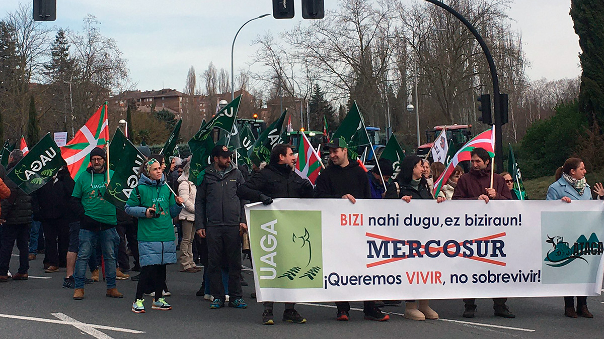 La protesta ha servido también para reiterar el rechazo al acuerdo comercial entre la Unión Europea y Mercosur, aún pendiente de ratificación. Las organizaciones agrarias sostienen que dicho pacto agrava la competencia desleal al permitir la entrada de productos agroalimentarios con estándares más laxos que los exigidos en Euskadi y el resto del Estado.