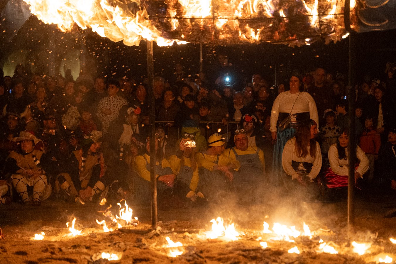 Una vez situada en el centro, la figura fue prendida fuego bajo la supervisión de los bomberos. Entre el silencio y algún aplauso, la sardina se fue consumiendo hasta quedar reducida a cenizas.
