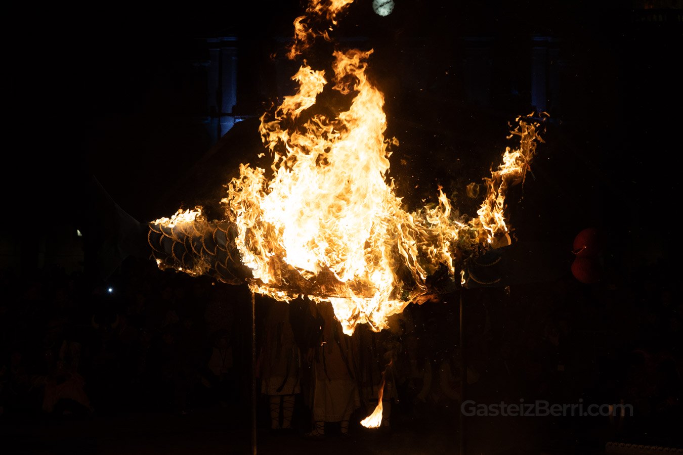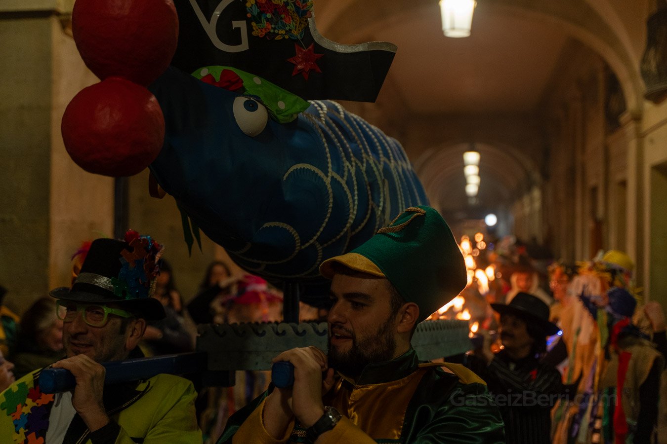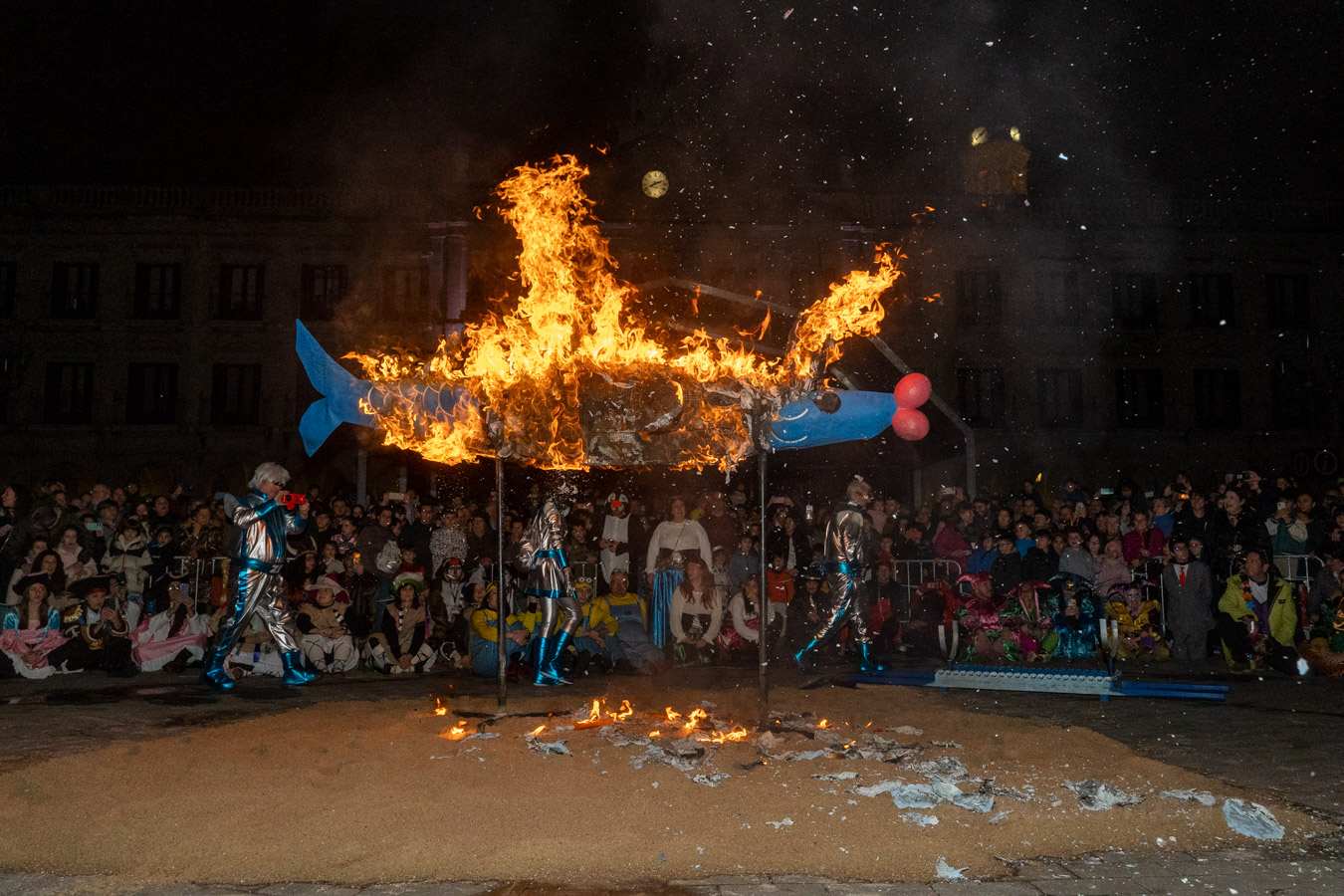 Vitoria-Gasteiz despidió ayer por la tarde-noche el Carnaval con la tradicional quema de la sardina en la Plaza Nueva. Tras siete días de programación festiva que comenzaron el pasado martes con la presentación de las comparsas, el acto puso el punto final a una semana marcada por los disfraces y la alta participación en la calle.