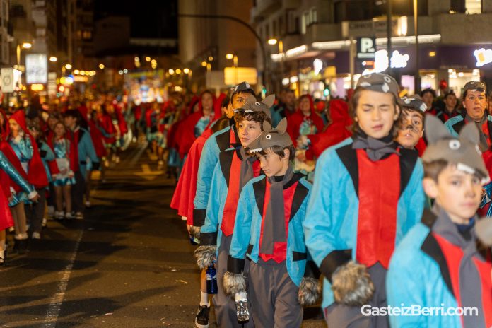 Las comparsas saldrán desde Portal de Legutiano, a la altura del Centro Cívico Iparralde, y seguirán por Emperador Carlos I, plaza Bilbao, calle Francia, La Paz, Ortiz de Zárate, La Florida y Ramón y Cajal, donde finalizará el desfile.